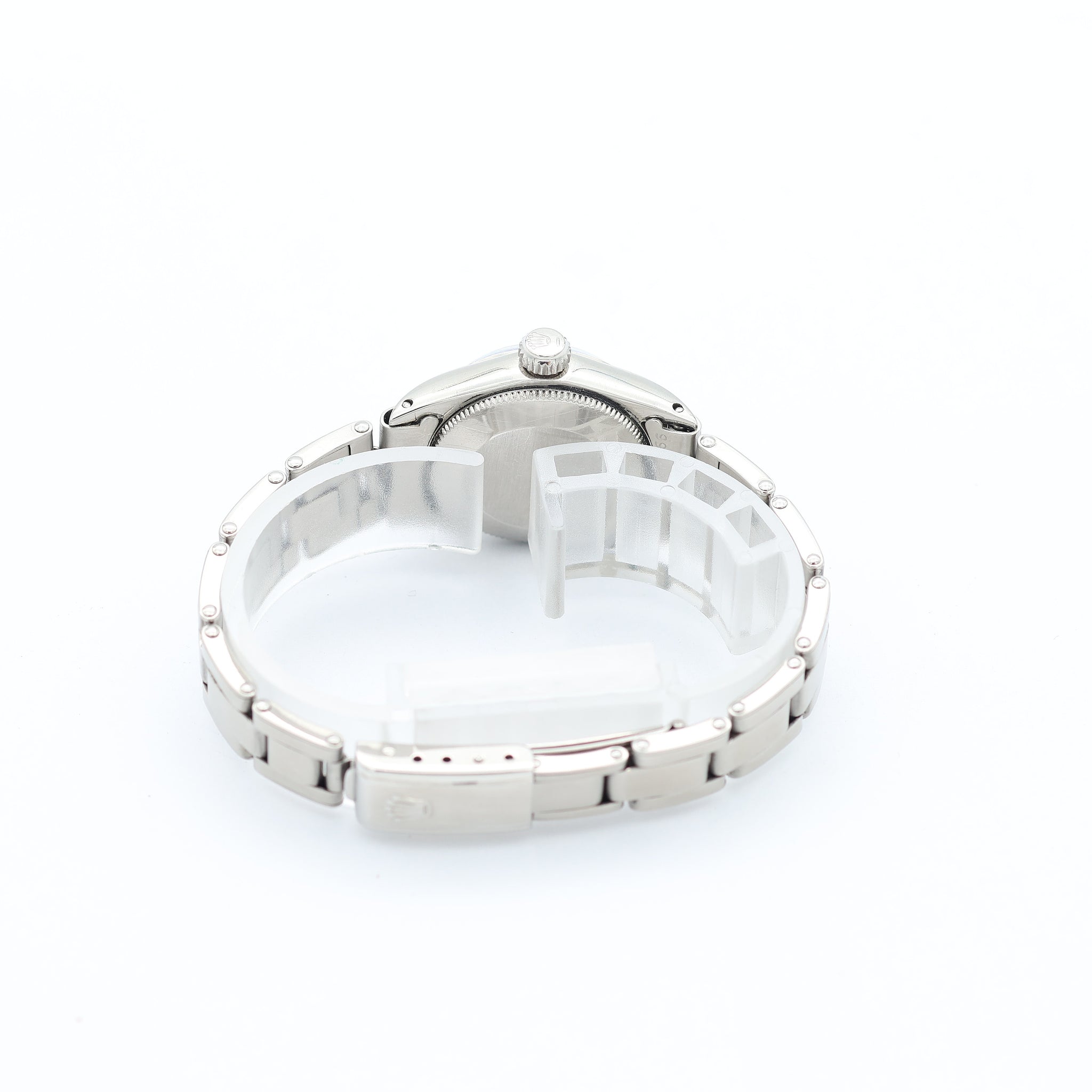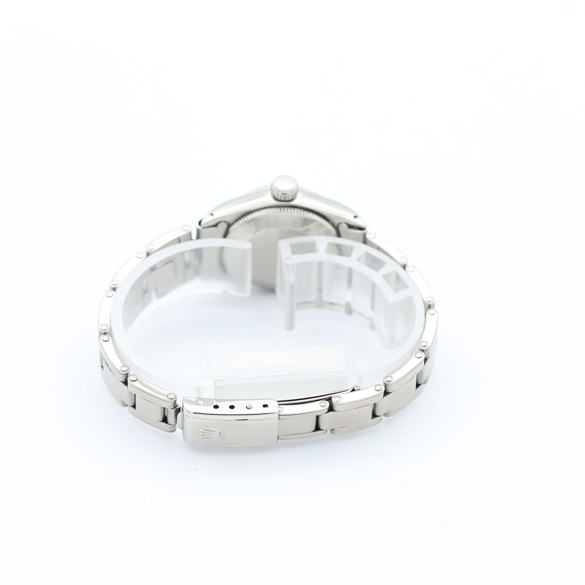 Steel case and bracelet,, an acrylic crystal over the silver dial, and a oyster bracelet blend together to create a ladies reference that can handle whatever your day may bring: an important night or a casual business day.