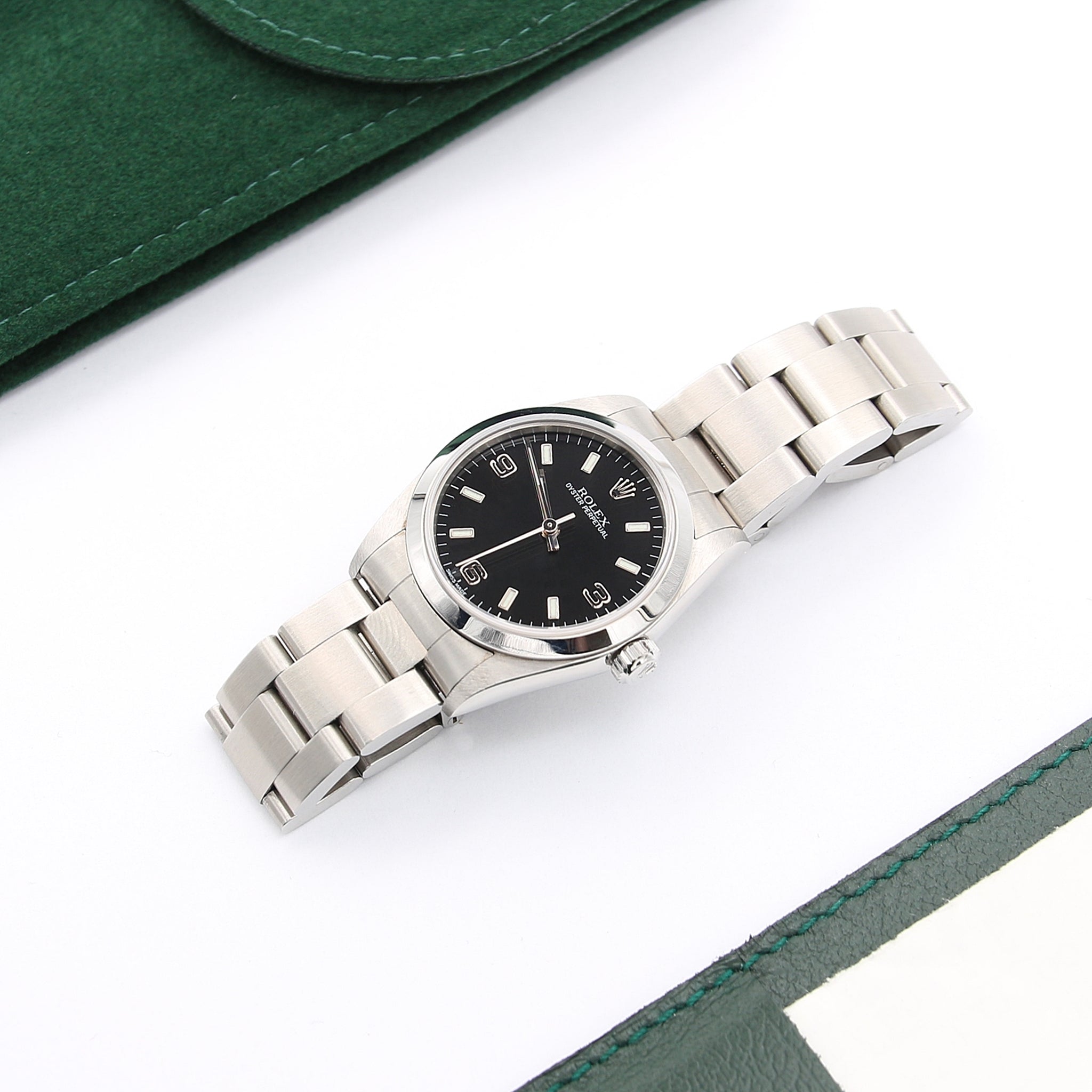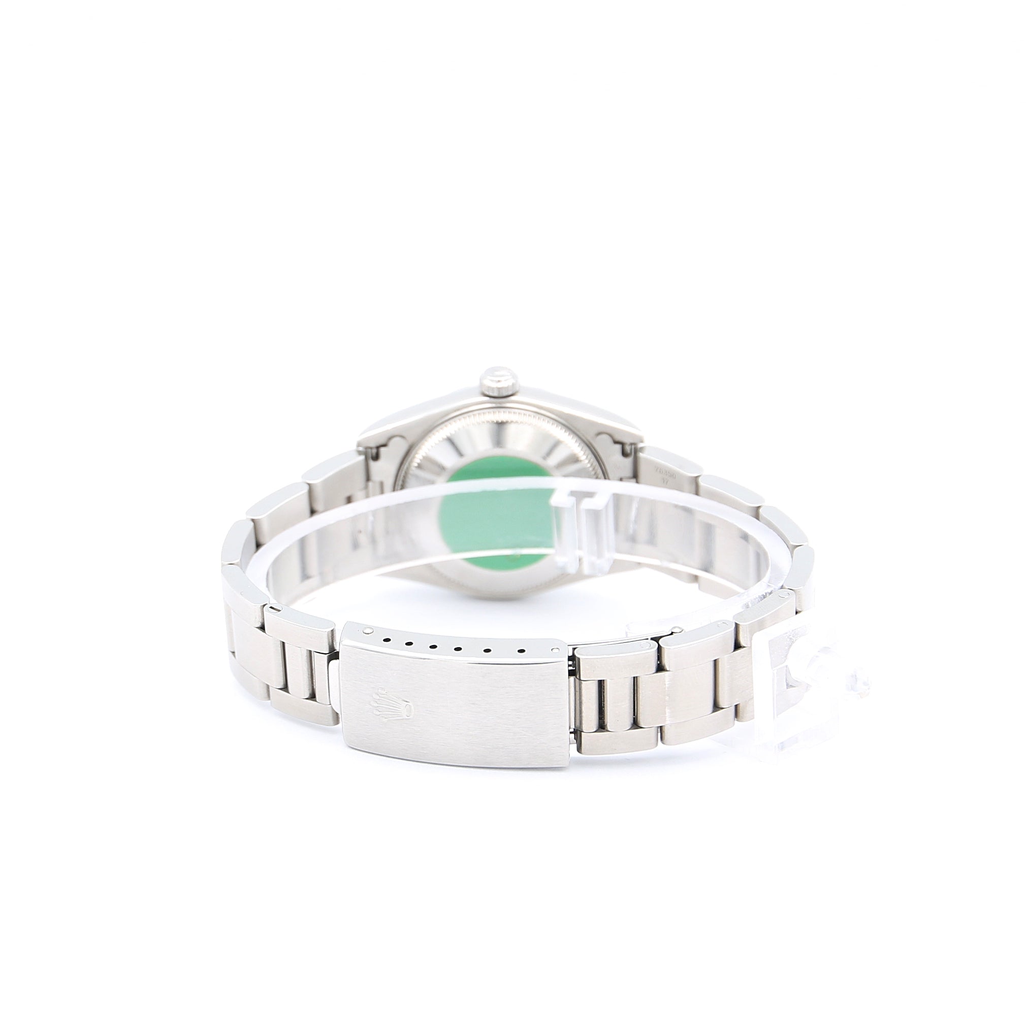 Sized at the uncommon 31mm diameter, it is just above the traditional women's Oyster Perpetual sizing of 26 (later 28mm), and just below the famed 36mm sizing of the classic model.