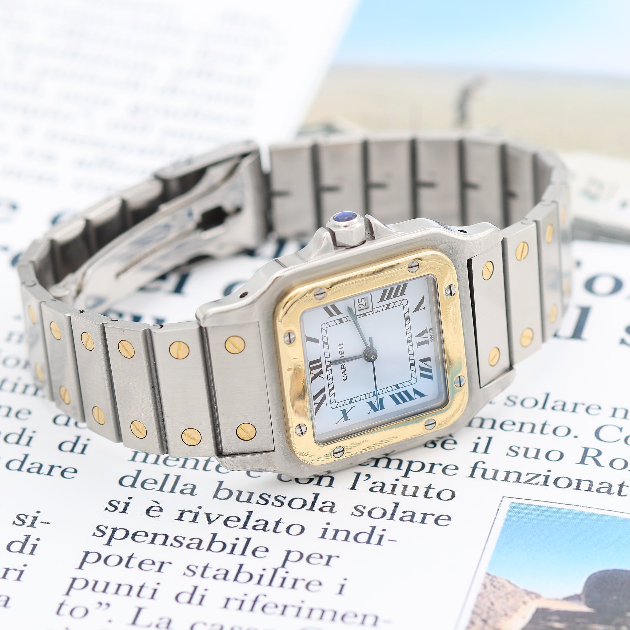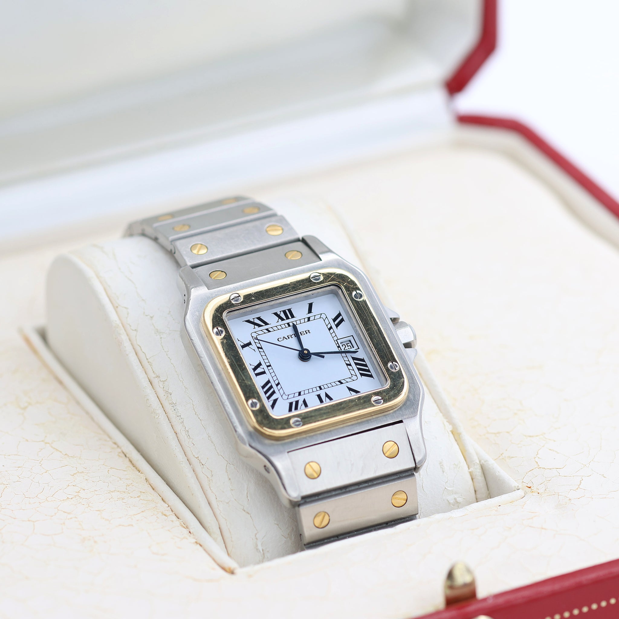 For sale at Debonar Watches: a pre-owned vintage Cartier "Santos Carree" wristwatch ref. 2961 from the '80s, mechanical with automatic winding, in gold and steel.