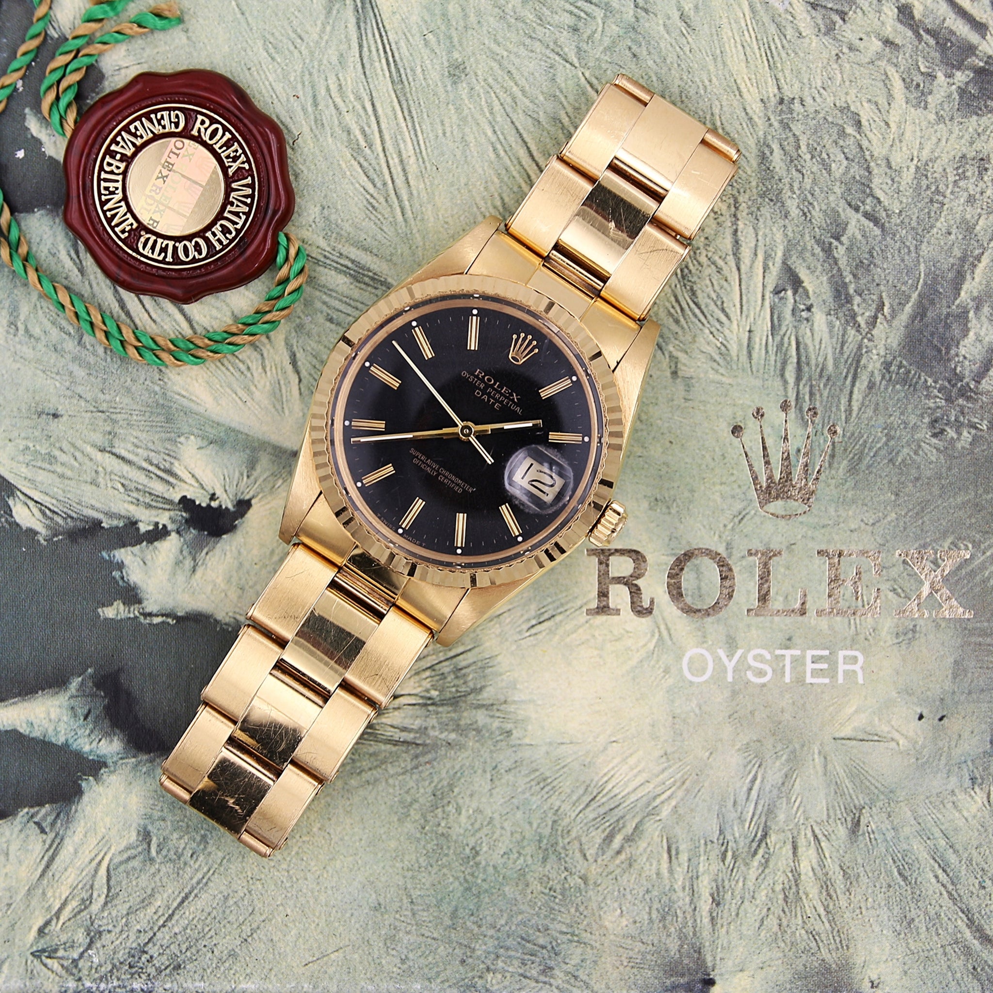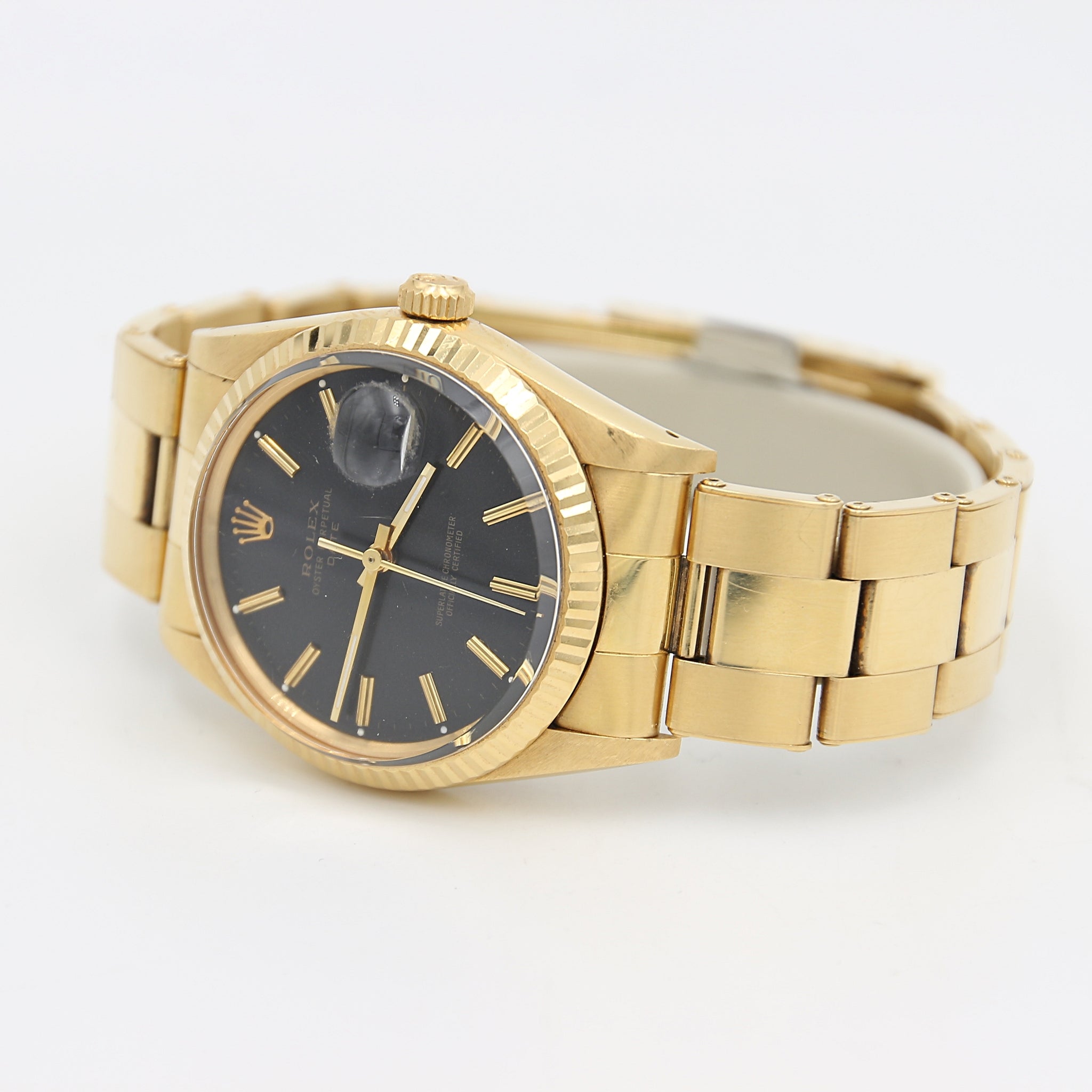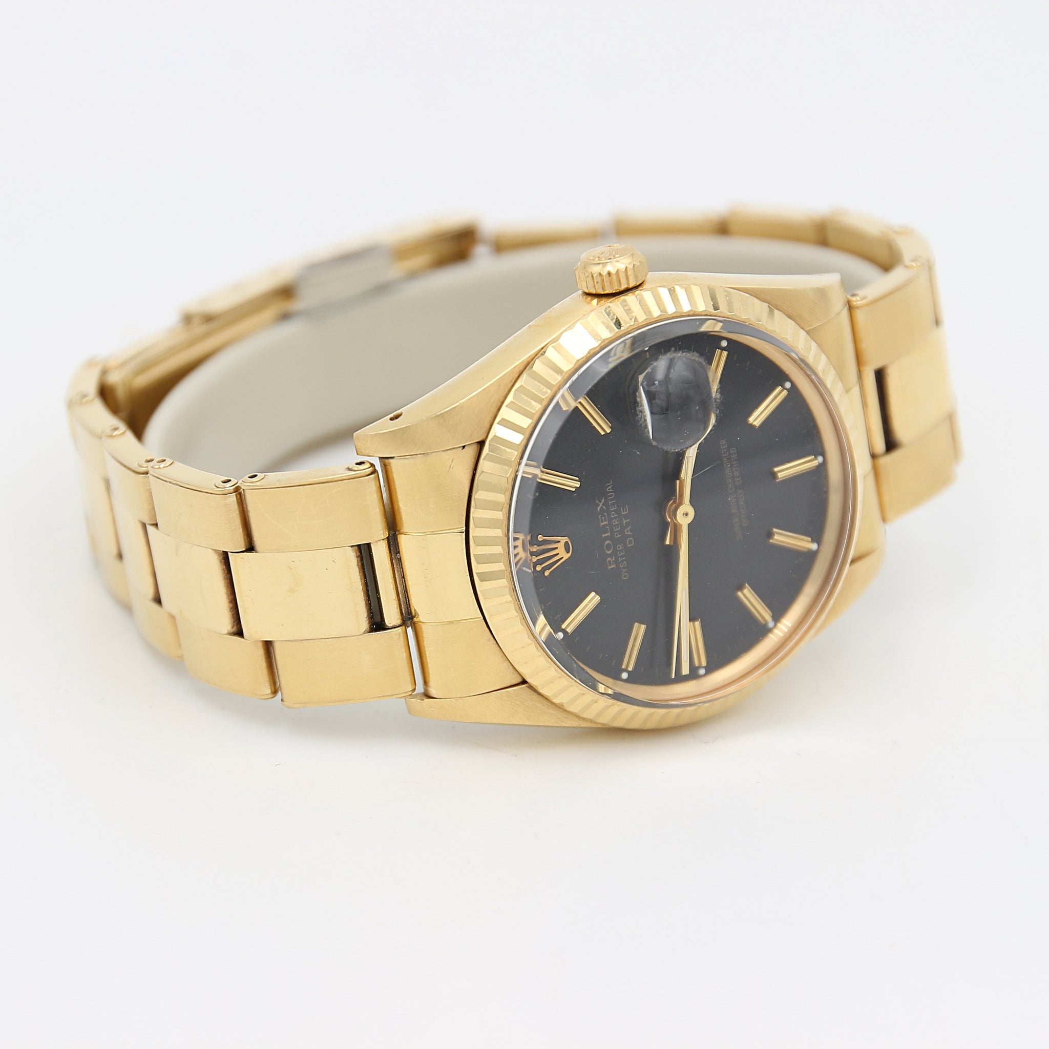 If you're looking for a timeless vintage gold Rolex watch, this Oyster Perpetual Date Ref 15038 has a lot going for it.