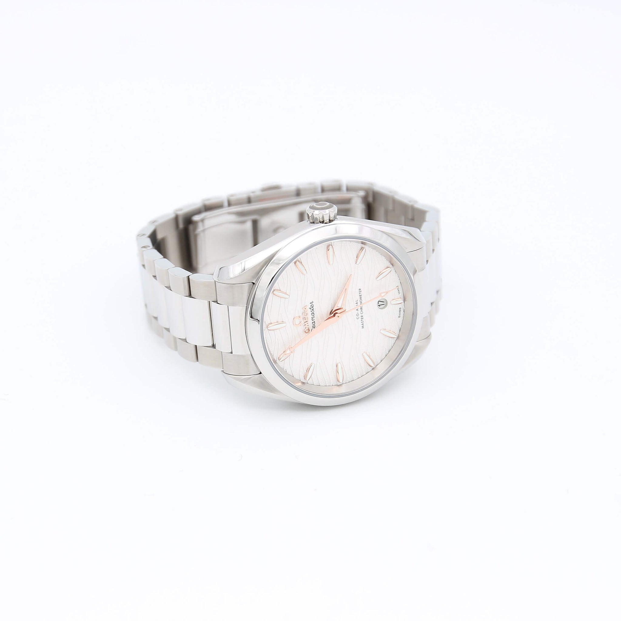 For sale at Debonar Watches: pre-owned ladies watch Omega Aqua Terra 150m Master Co-Axial ref. 220.10.38.20.02.002 full set, with original box and papers.