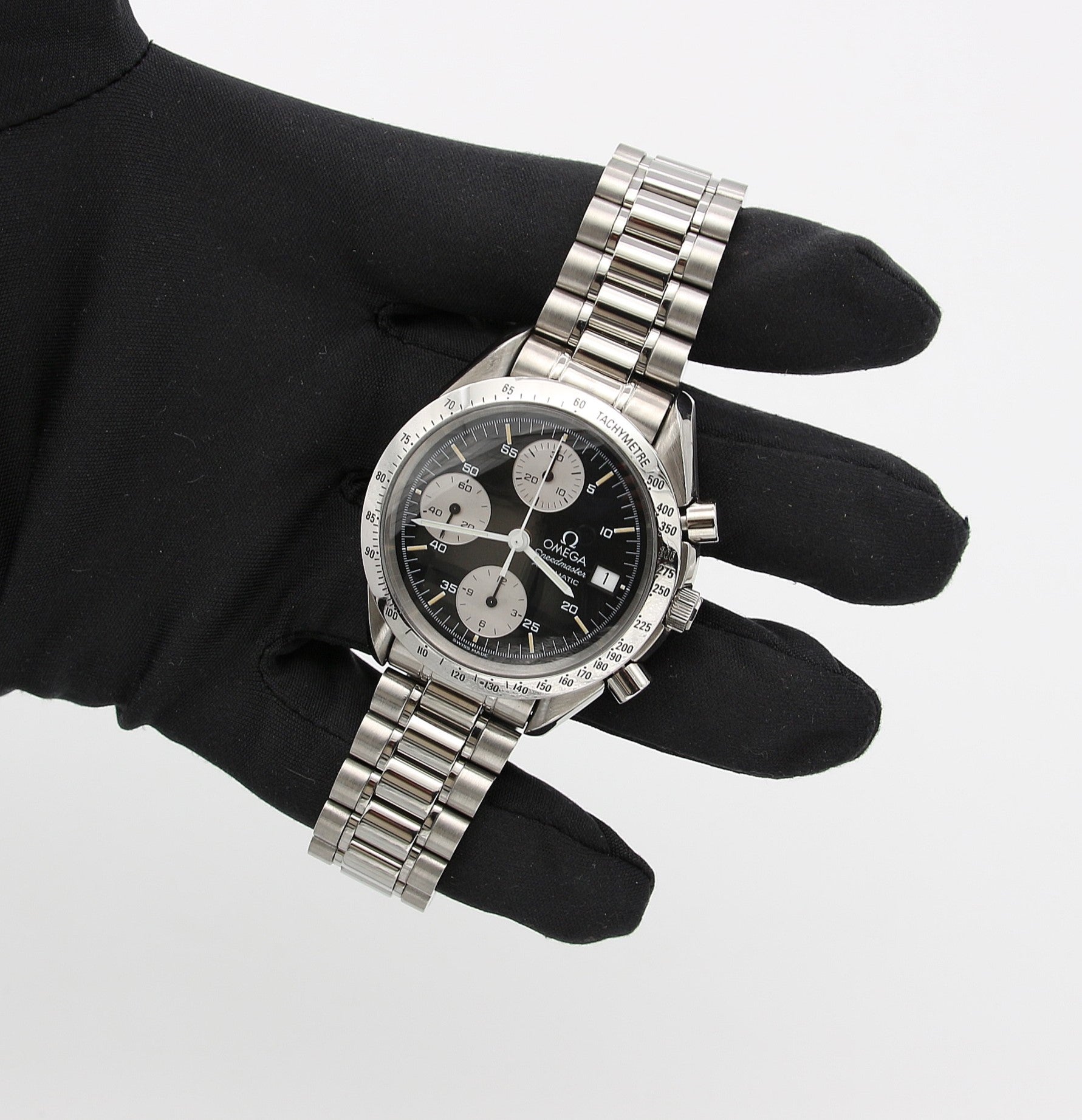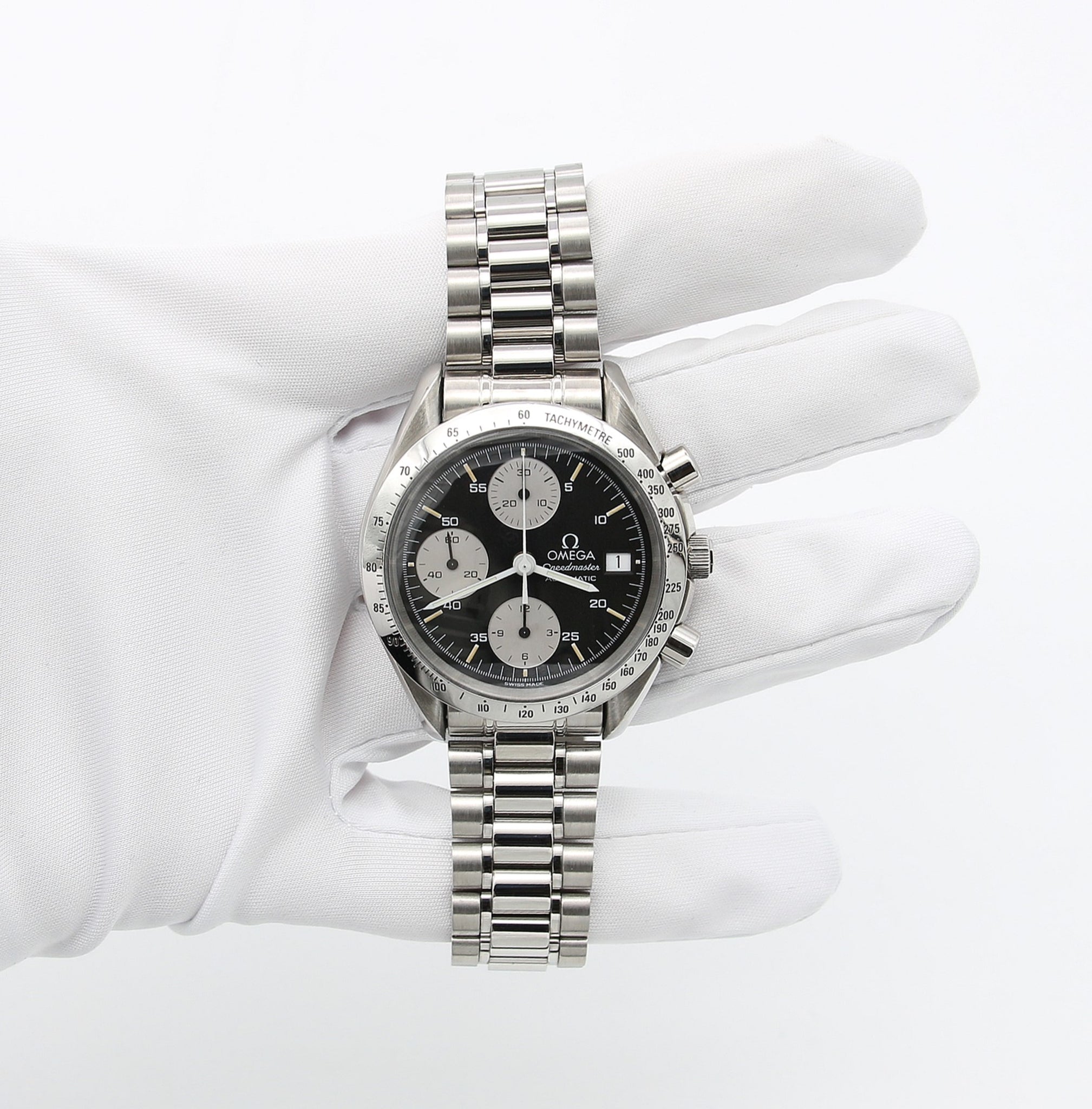 For sale at Debonar Watches: pre-owned Omega Speedmaster Date 3511.50 with black dial (inverted panda).
