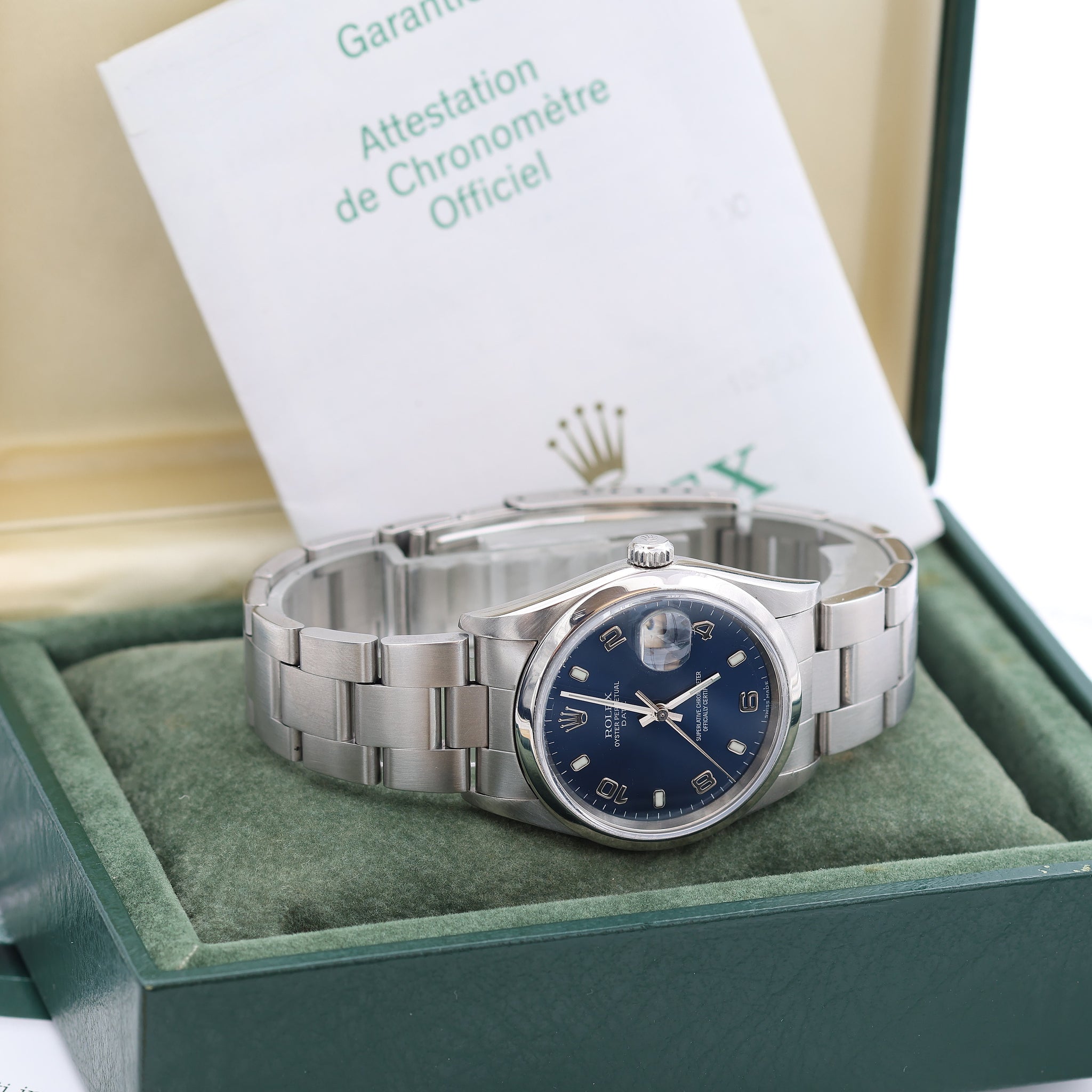 Rolex Date ref. 15200 Blue Arabic Dial Oyster Bracelet - Full Set