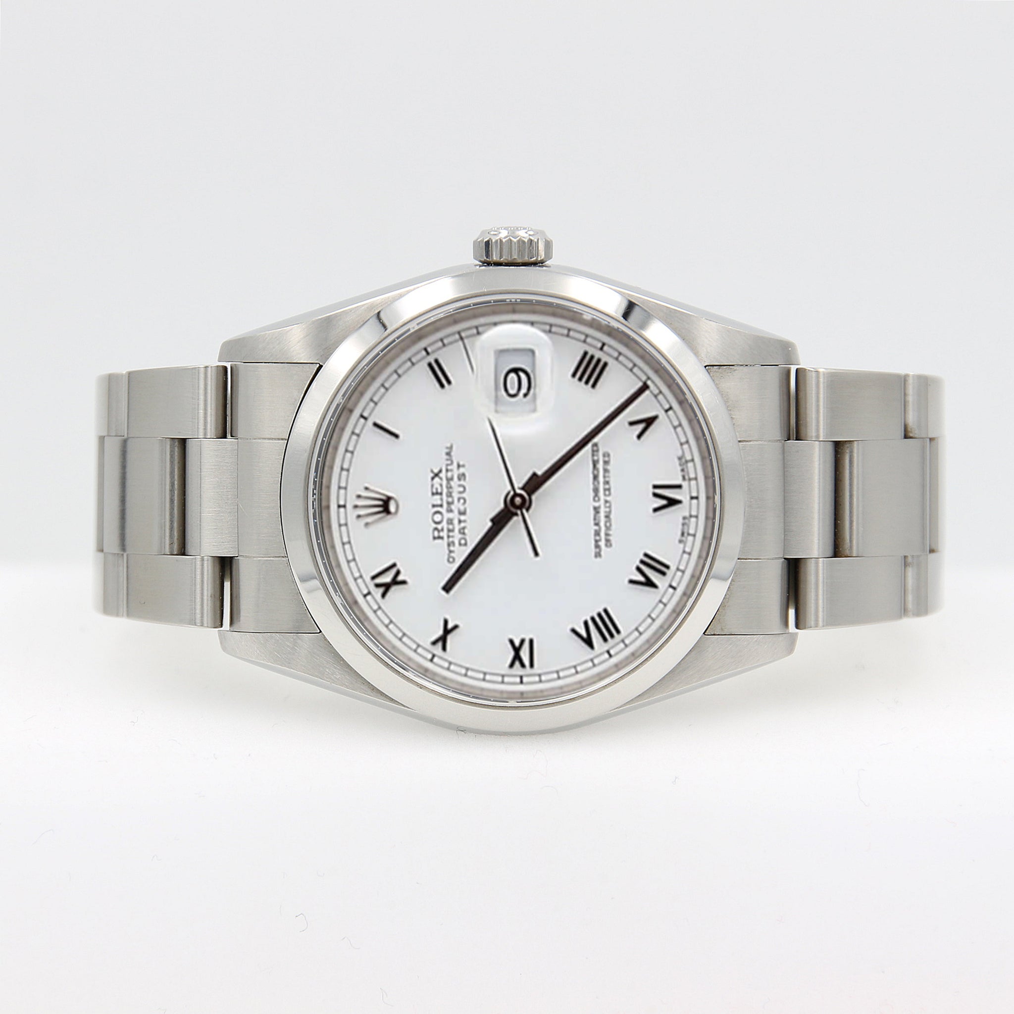 Rolex Datejust 36 ref. 16200 - White Small Roman Dial Oyster Bracelet - Full Set