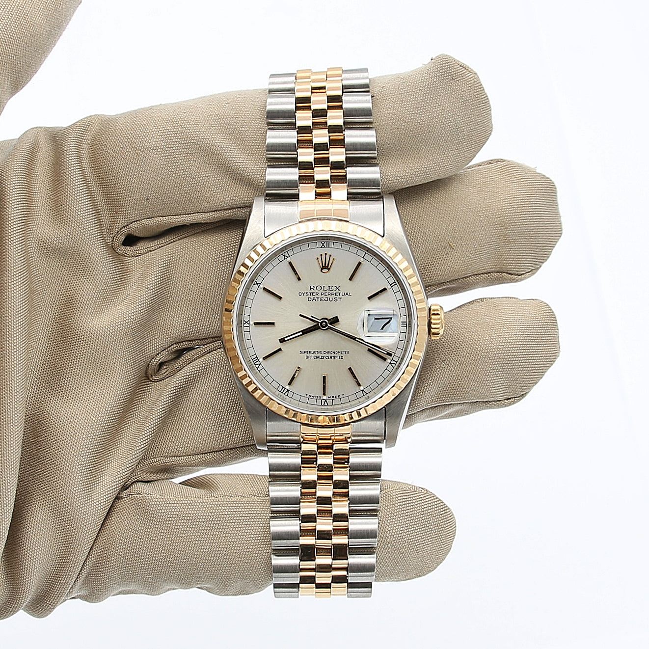 For sale at Debonar Watches: pre-owned Rolex Datejust 16233 in steel and 18k yellow gold, full set.