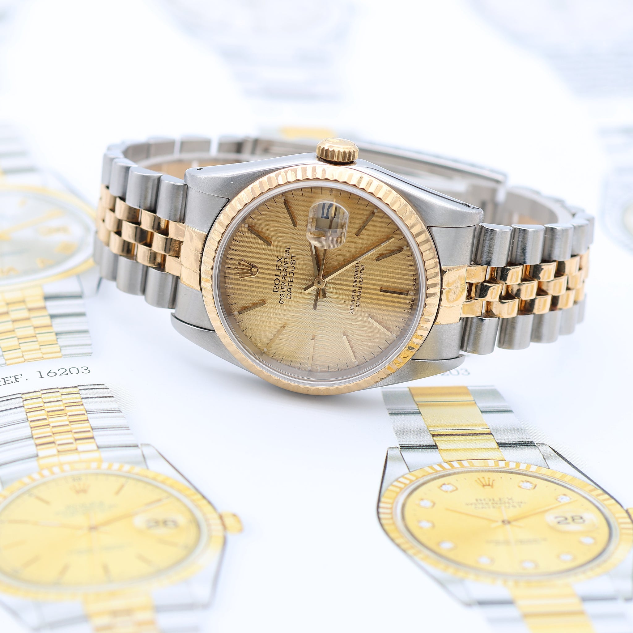 For sale at Debonar Watches: pre-owned Rolex Datejust 16233 in steel and 18k yellow gold, full set.