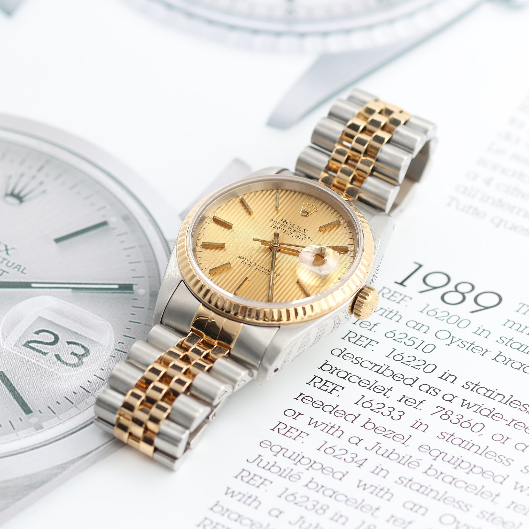 Even though the series came to an end in the mid 2000’s, the Datejust ref. 16233 is a thoroughly modern version of the watch, and one with the classic two-tone Rolex look.