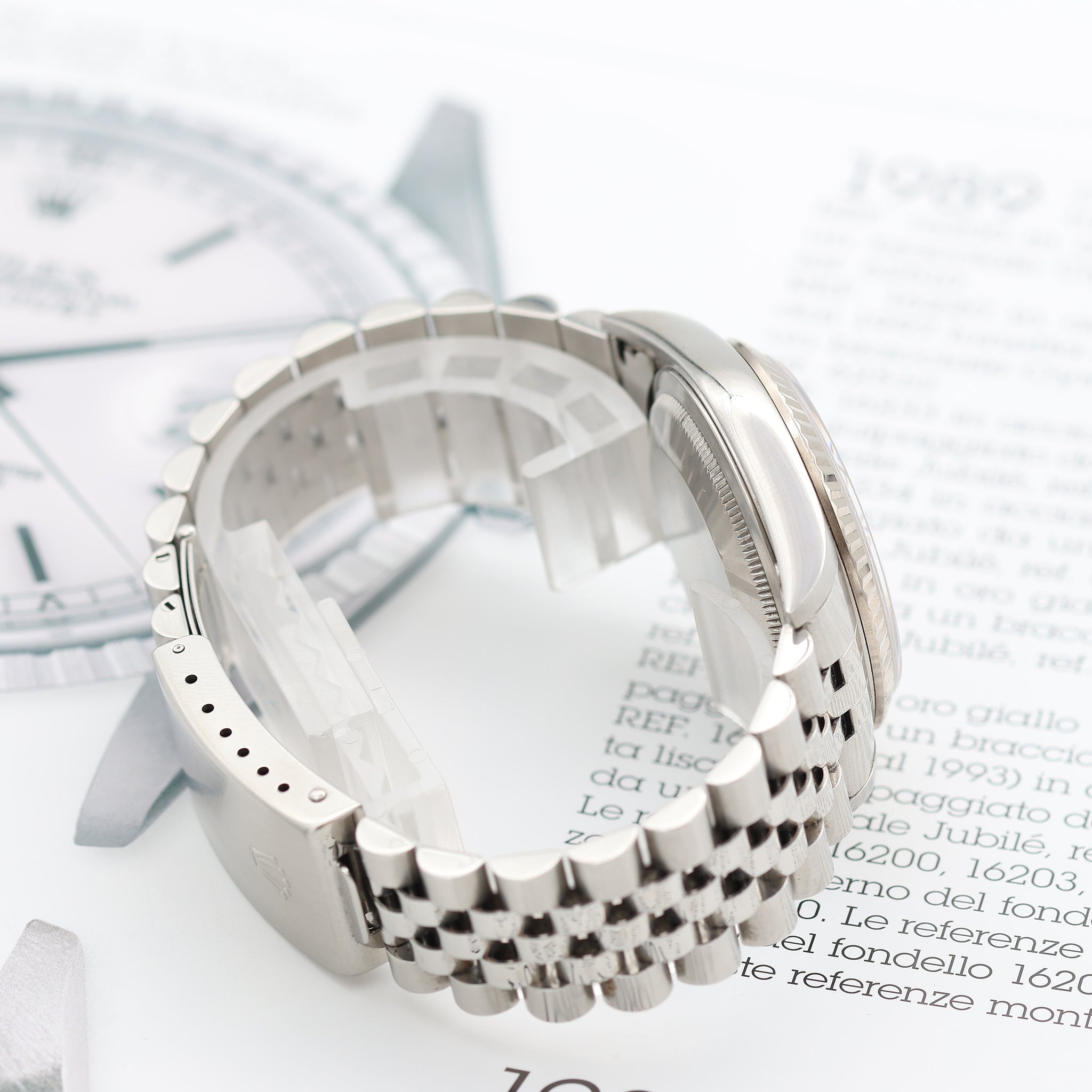 This piece is a Rolex Datejust Ref. 16234 with a black dial and date opening at 3 o'clock.