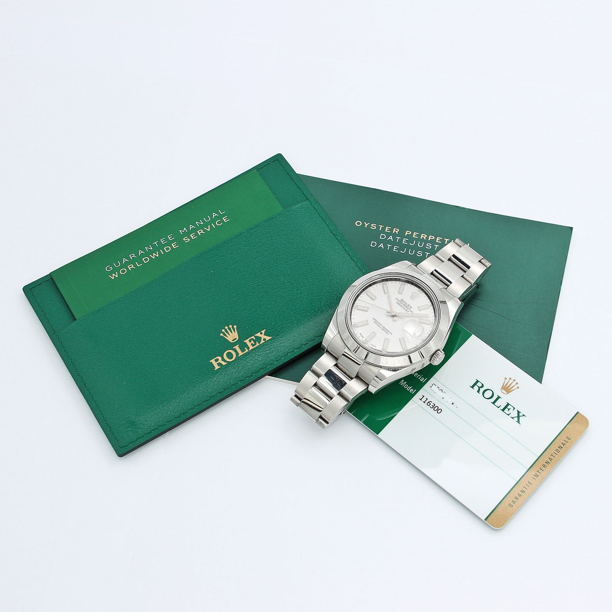 For sale at Debonar Watches: pre-owned Rolex Datejust II 116300, with a bright white dial, full set. Whether you're buying your first serious timepiece or adding a daily wear icon to your portfolio, this Rolex 116300 is a powerful and reliable choice.