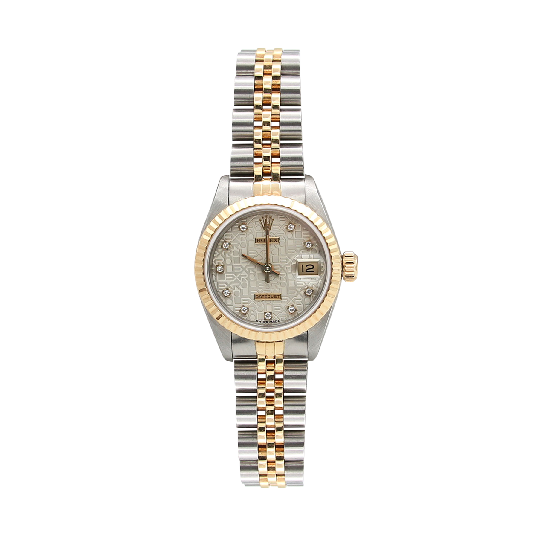 For sale at Debonar Watches: pre-owned Rolex Datejust Lady ref. 69173 on an Jubilee bracelet.