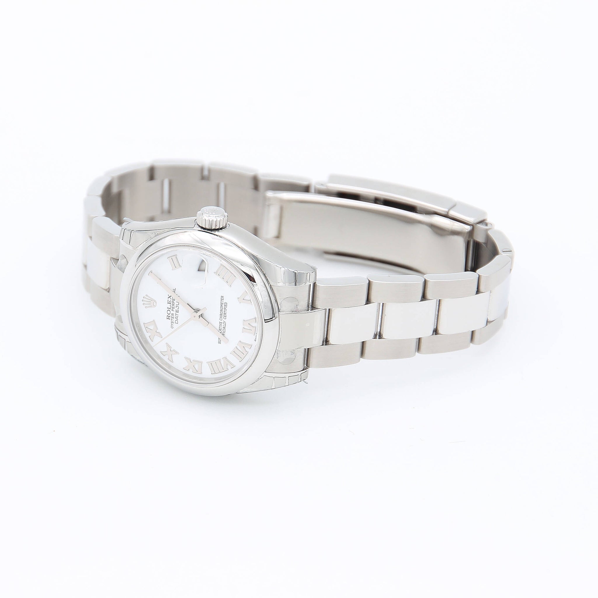 For sale at Debonar Watches: pre-owned Rolex Datejust 178240, in excellent conditions, full set. The Rolex Datejust 178240 with a white roman dial offers a minimalist and elegant design, perfect for professionals who appreciate refined luxury in a more compact size.