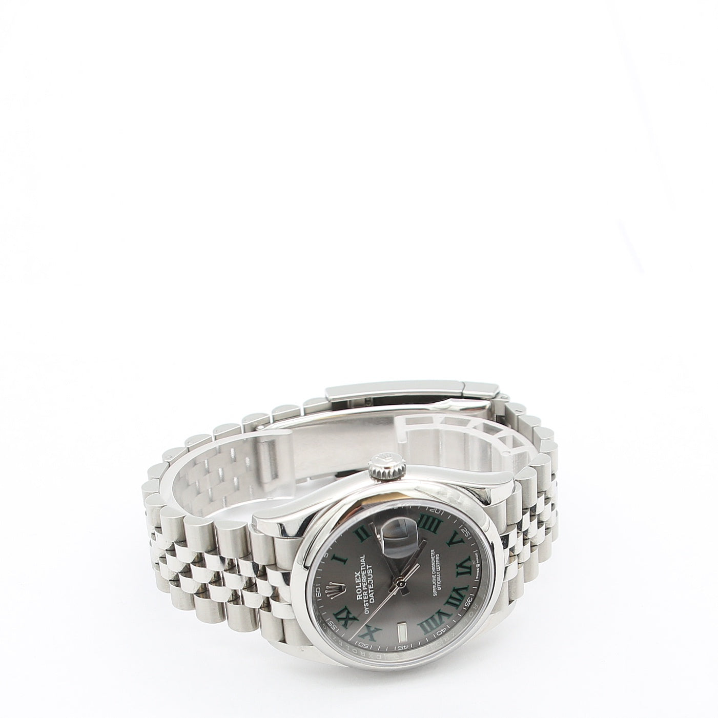 This Oyster Perpetual Datejust 36 in Oystersteel features a rare Wimbledon grey dial and a Jubilee bracelet.