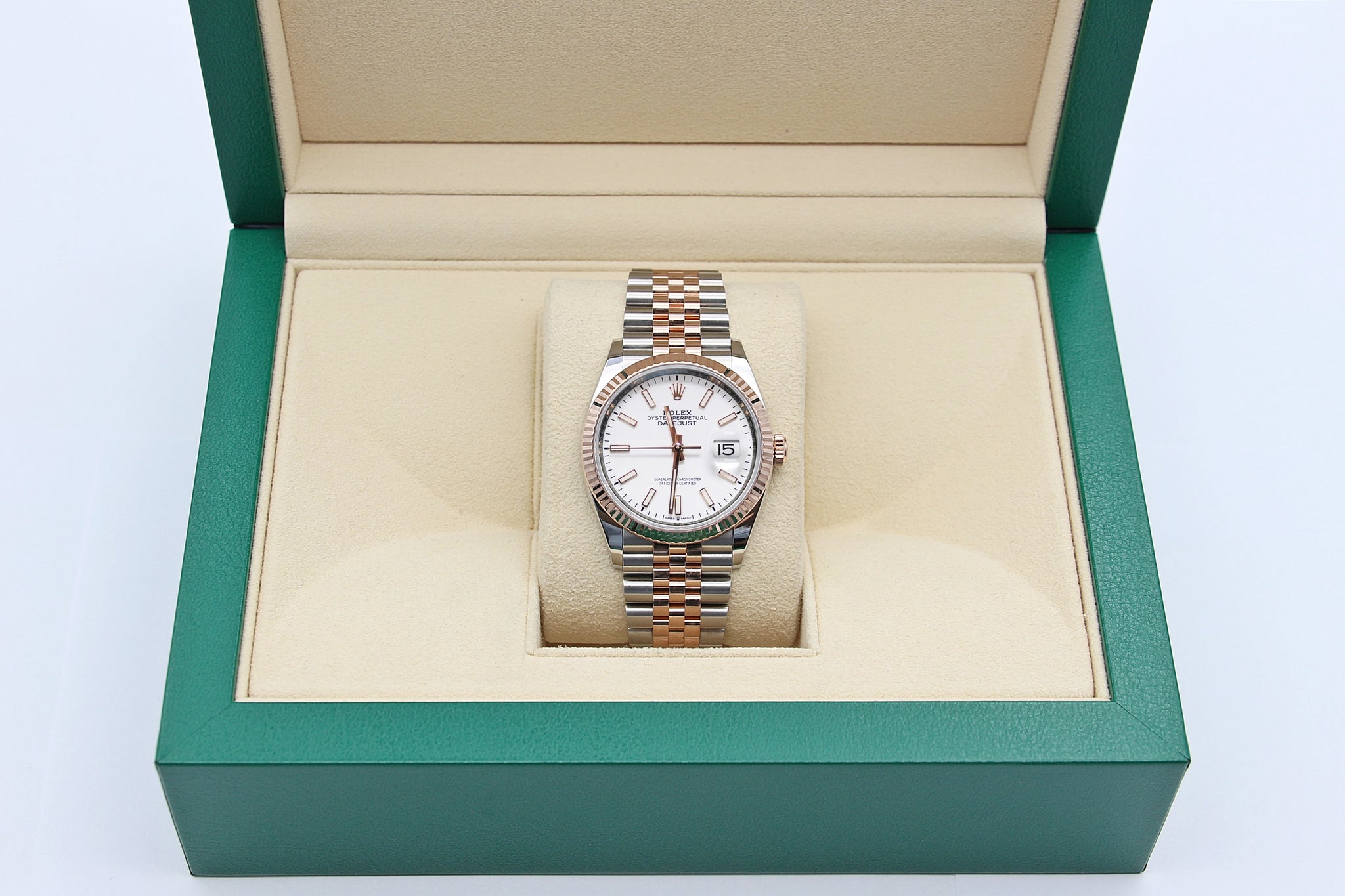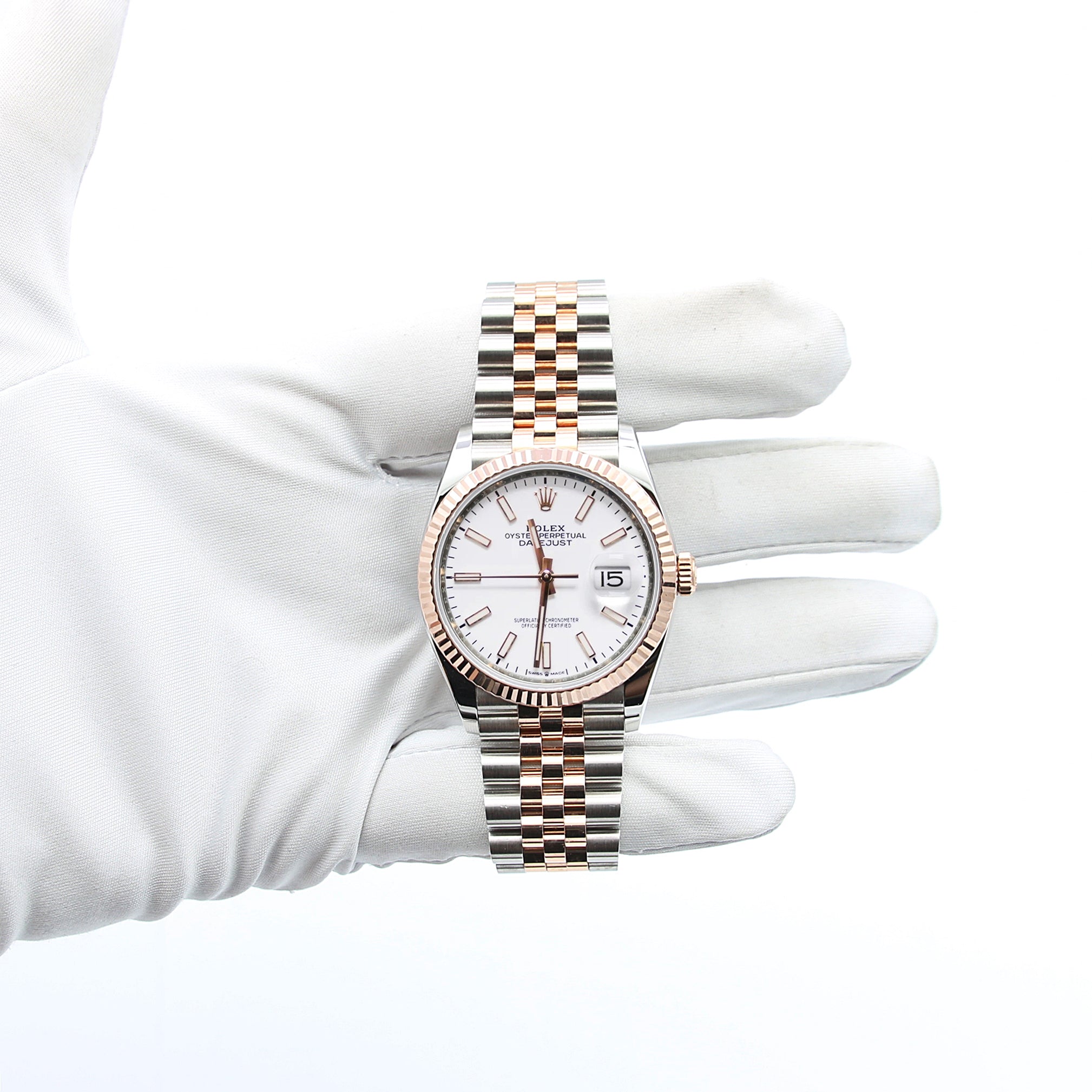 The Rolex 126231 has a beautiful Jubilee bracelet constructed of stainless steel and rose gold.
