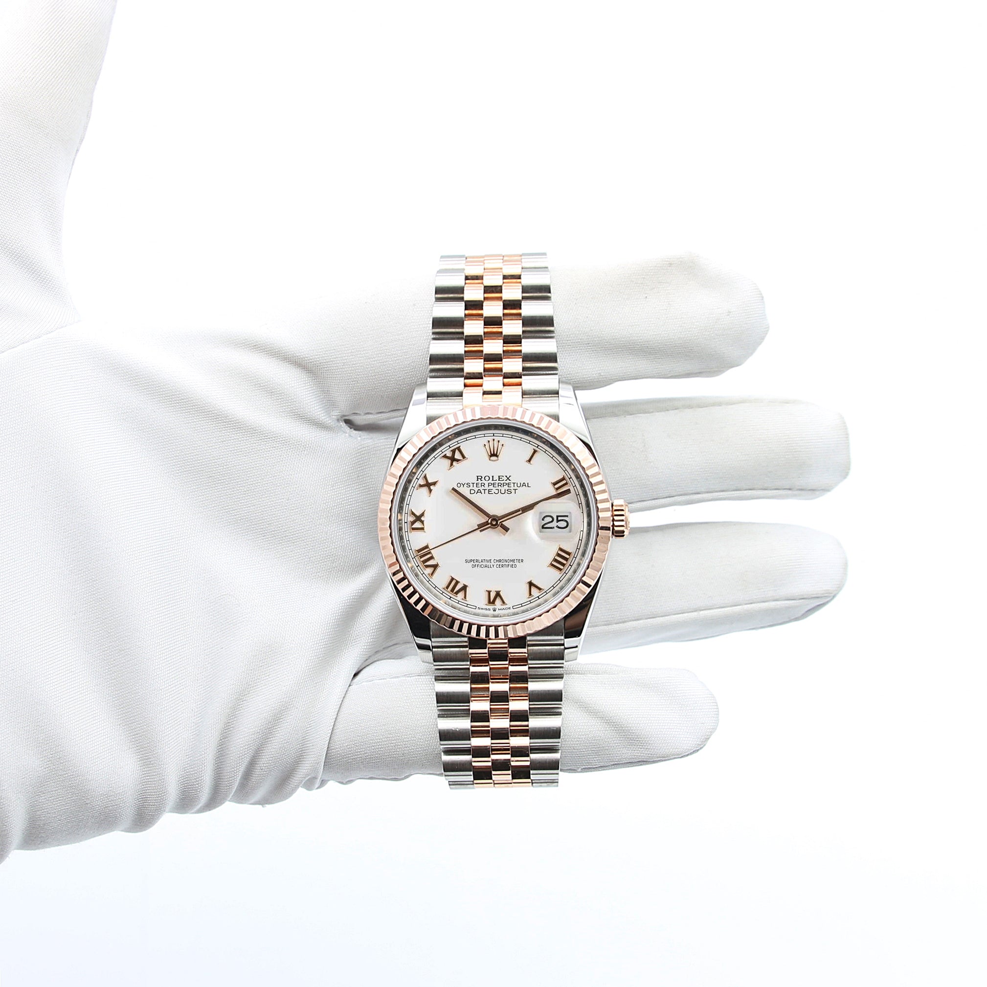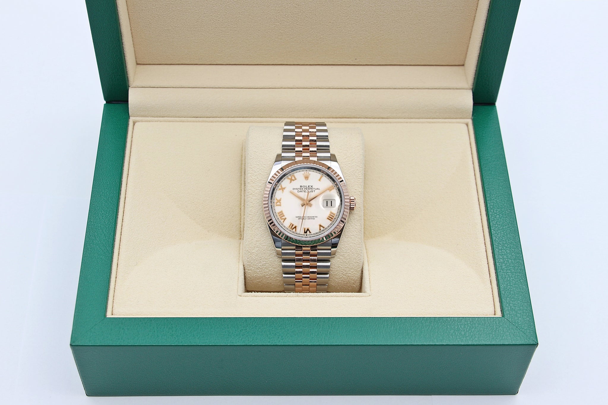 The Rolex 126231 has a beautiful Jubilee bracelet constructed of stainless steel and rose gold.