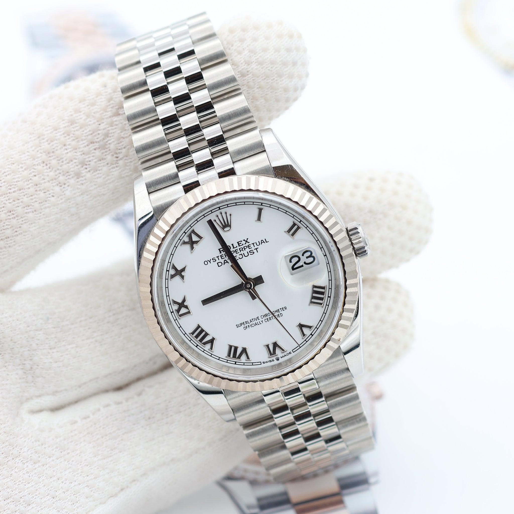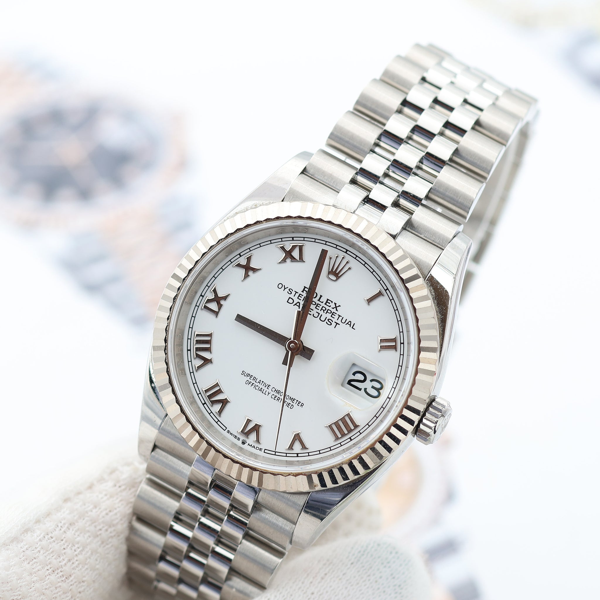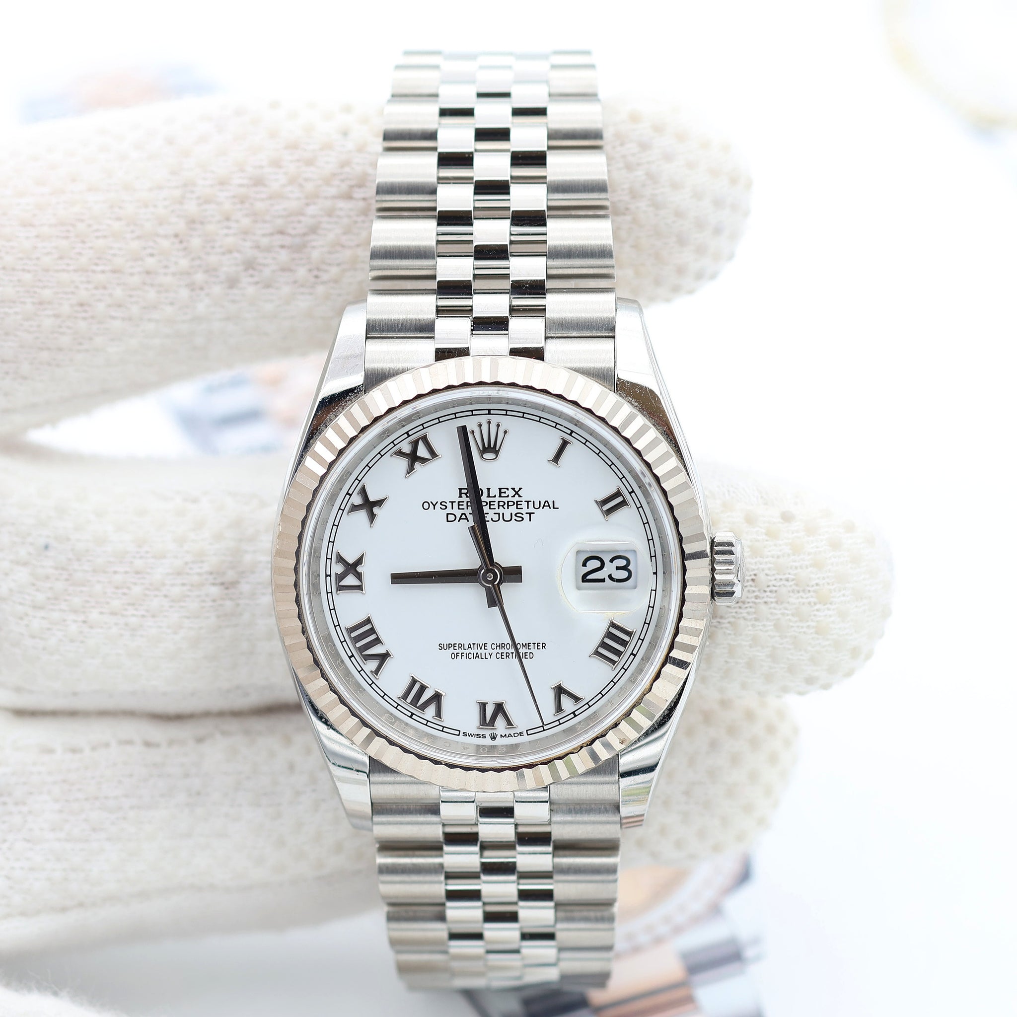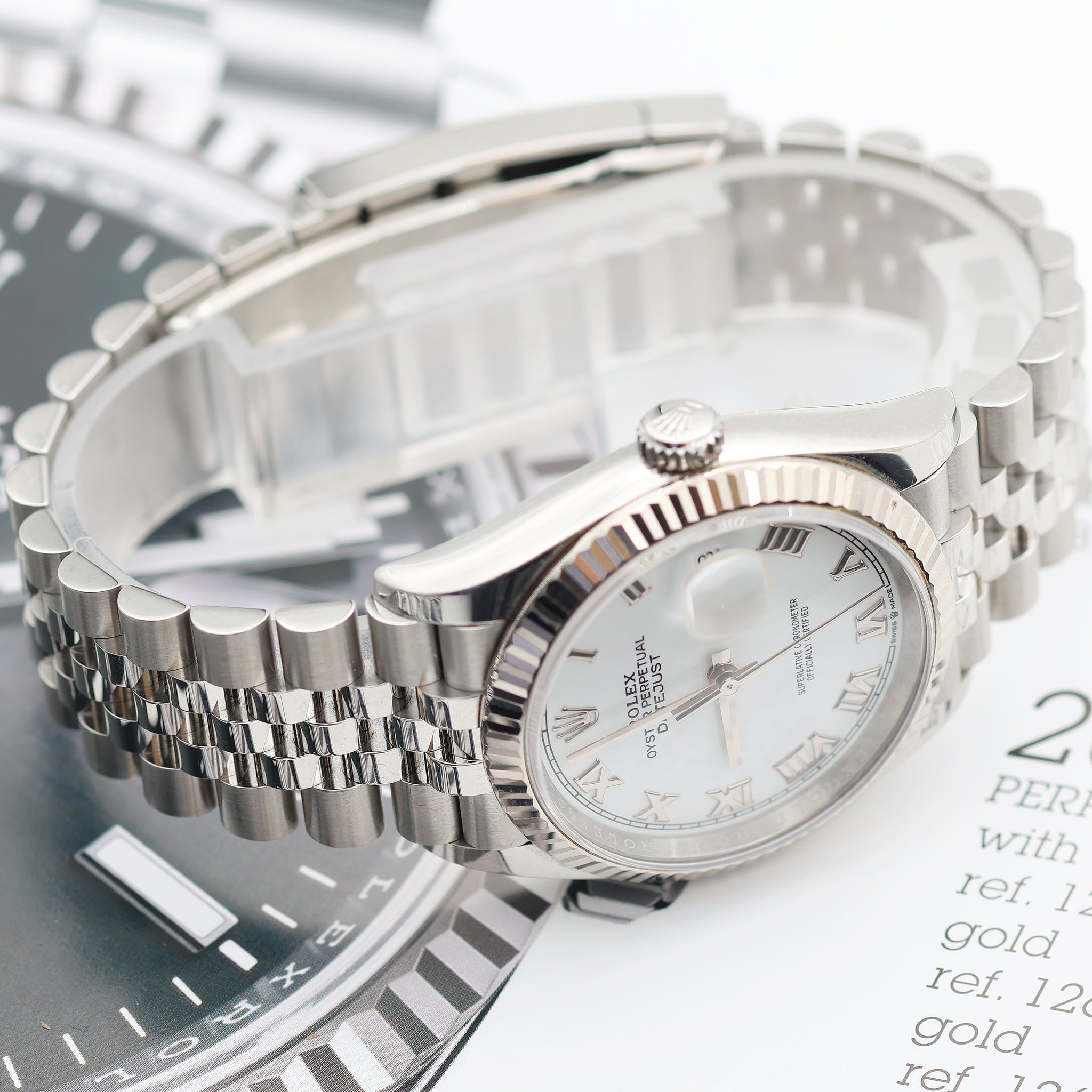 Rolex Datejust ref. 126234 White Roman Dial Jubilee bracelet - Full Set