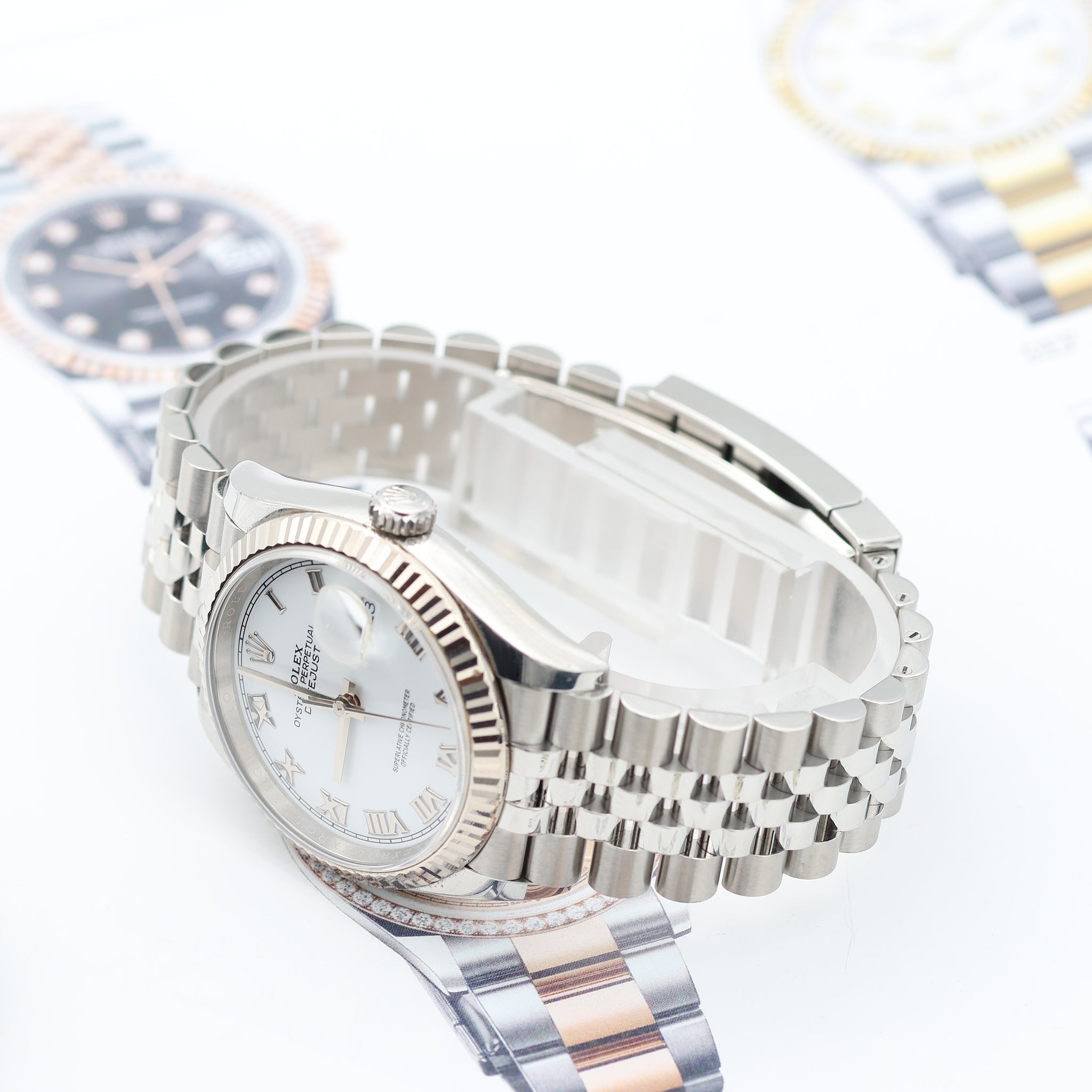 The Rolex Datejust in 36mm, Rolesor configuration (steel & white gold) and jubilee bracelet.