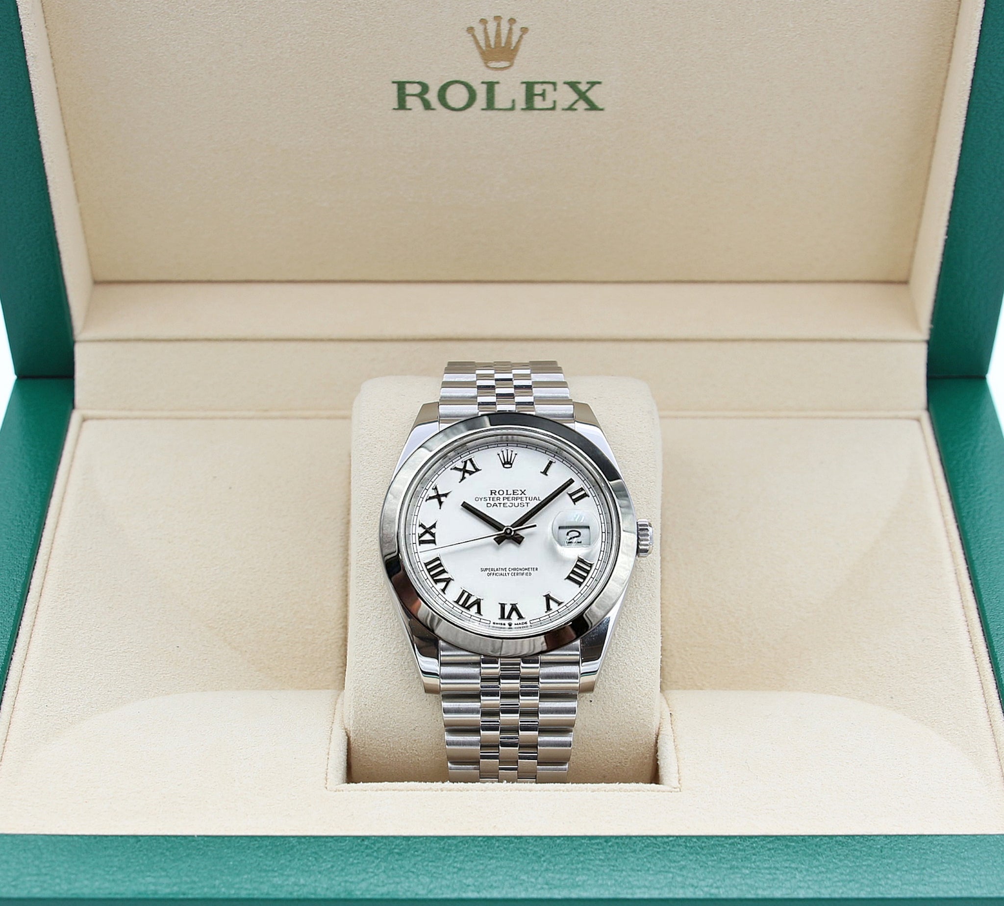 Rolex Datejust ref. 126300 White Roman Dial Jubilee bracelet - Full Set
