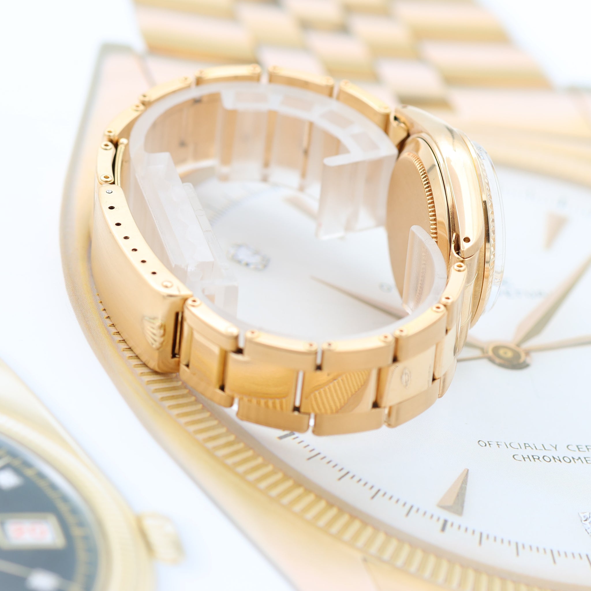 This elegant Rolex features a gold Oyster bracelet and a matching case in yellow gold, with a stunning fluted bezel.