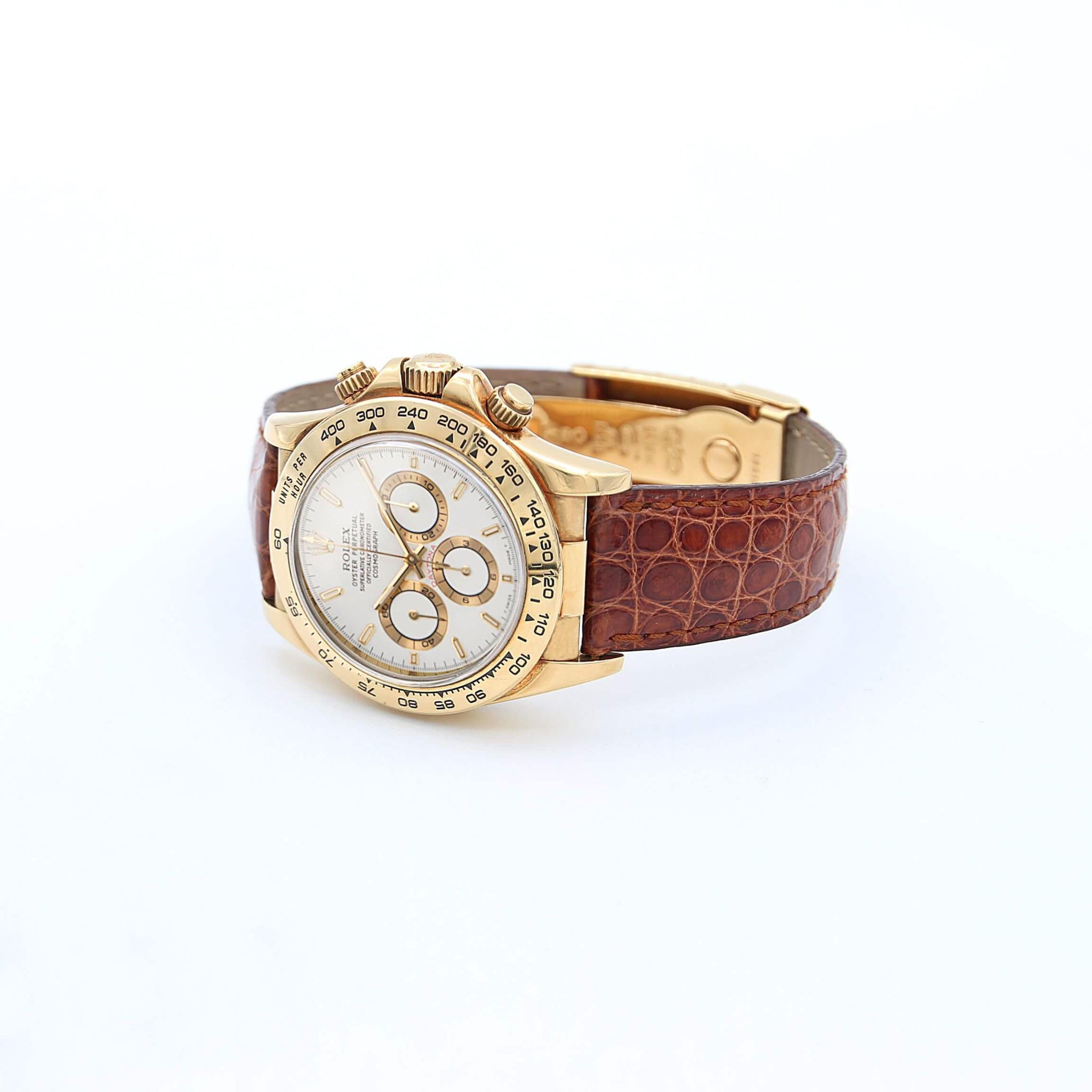The Rolex Cosmograph ref. 16518 is a particular yellow gold variant of the Daytona chronograph with Zenith power.