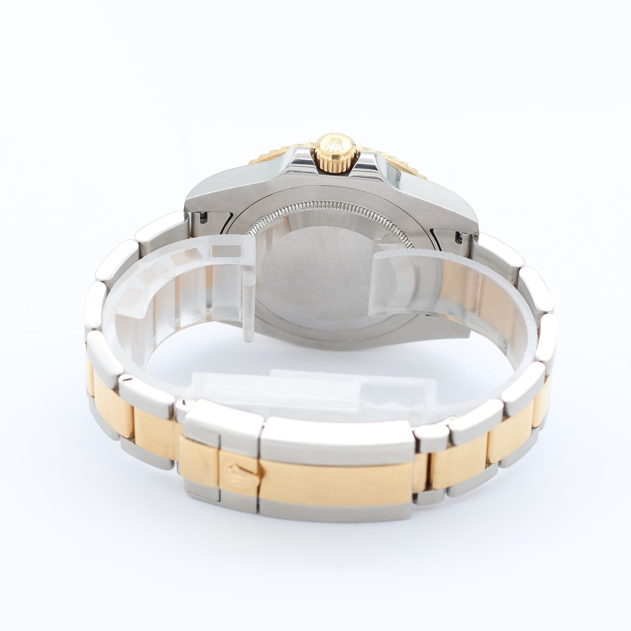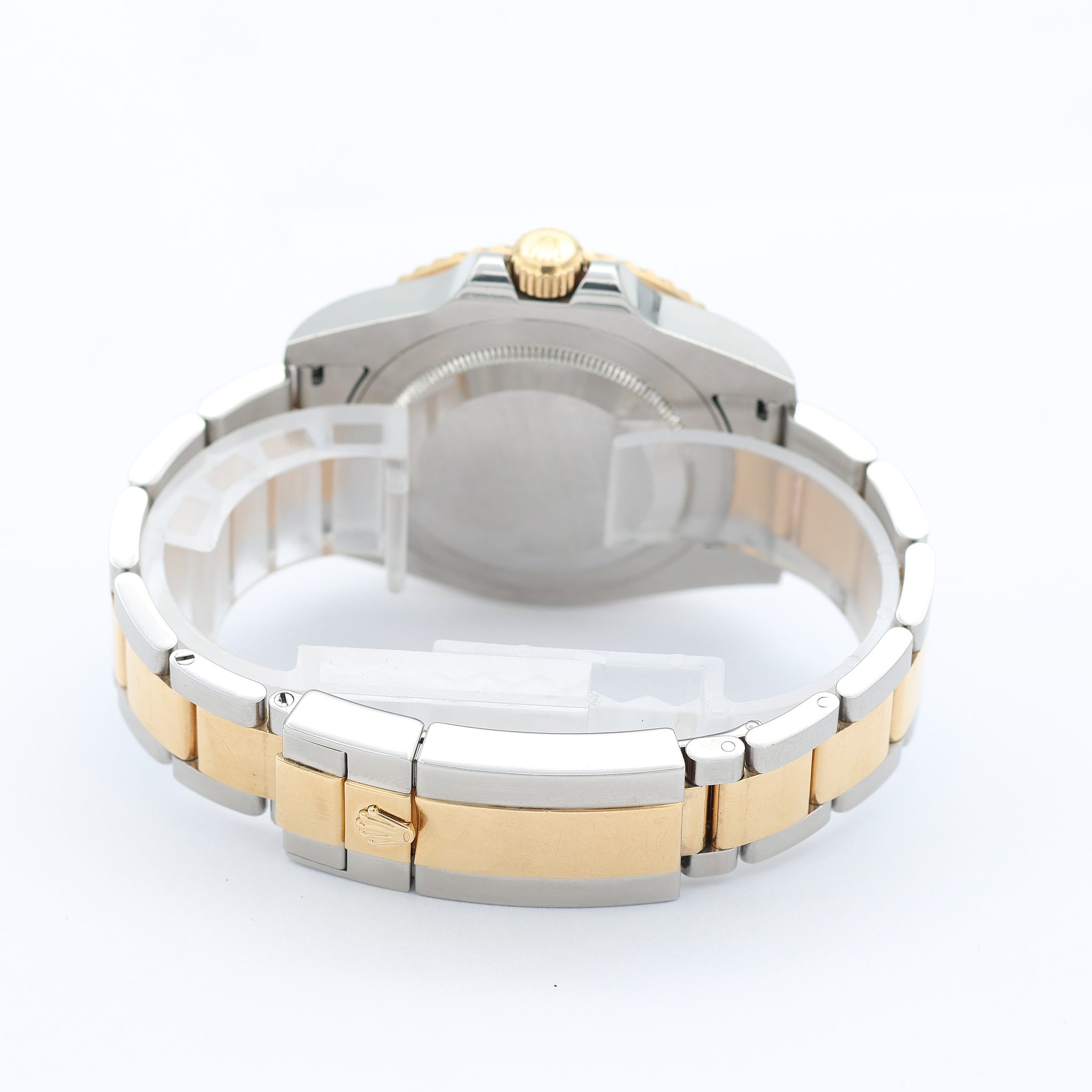 The case and Oyster bracelet feature a striking two-tone finish that utilizes 904L stainless steel and 18 karat yellow gold.