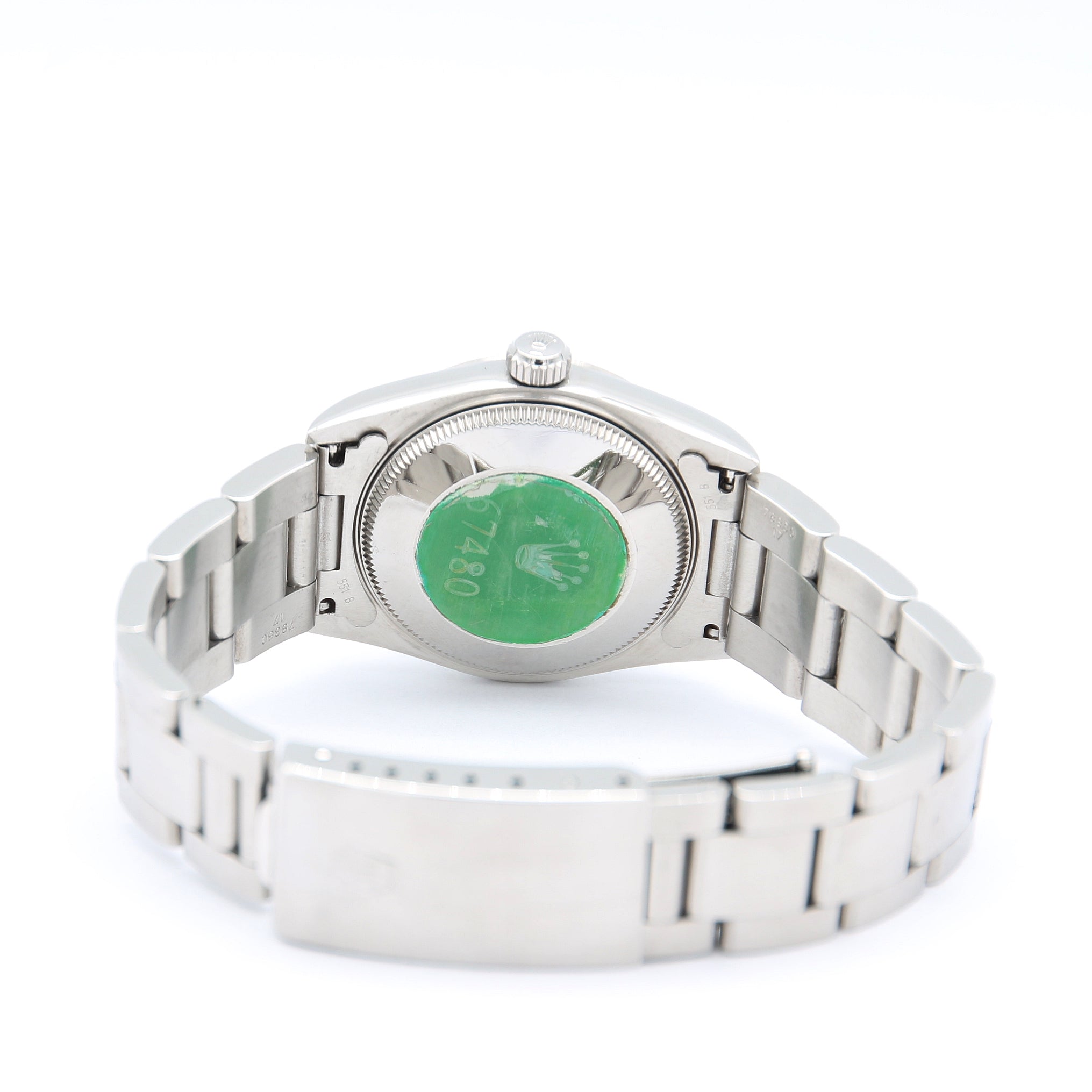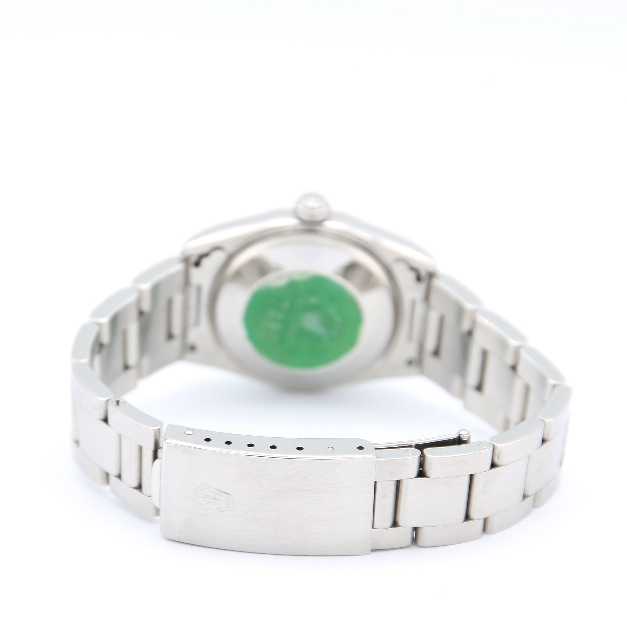 Sized at the uncommon 31mm diameter, it is just above the traditional women's Oyster Perpetual sizing of 26 (later 28mm), and just below the famed 36mm sizing of the classic model.
