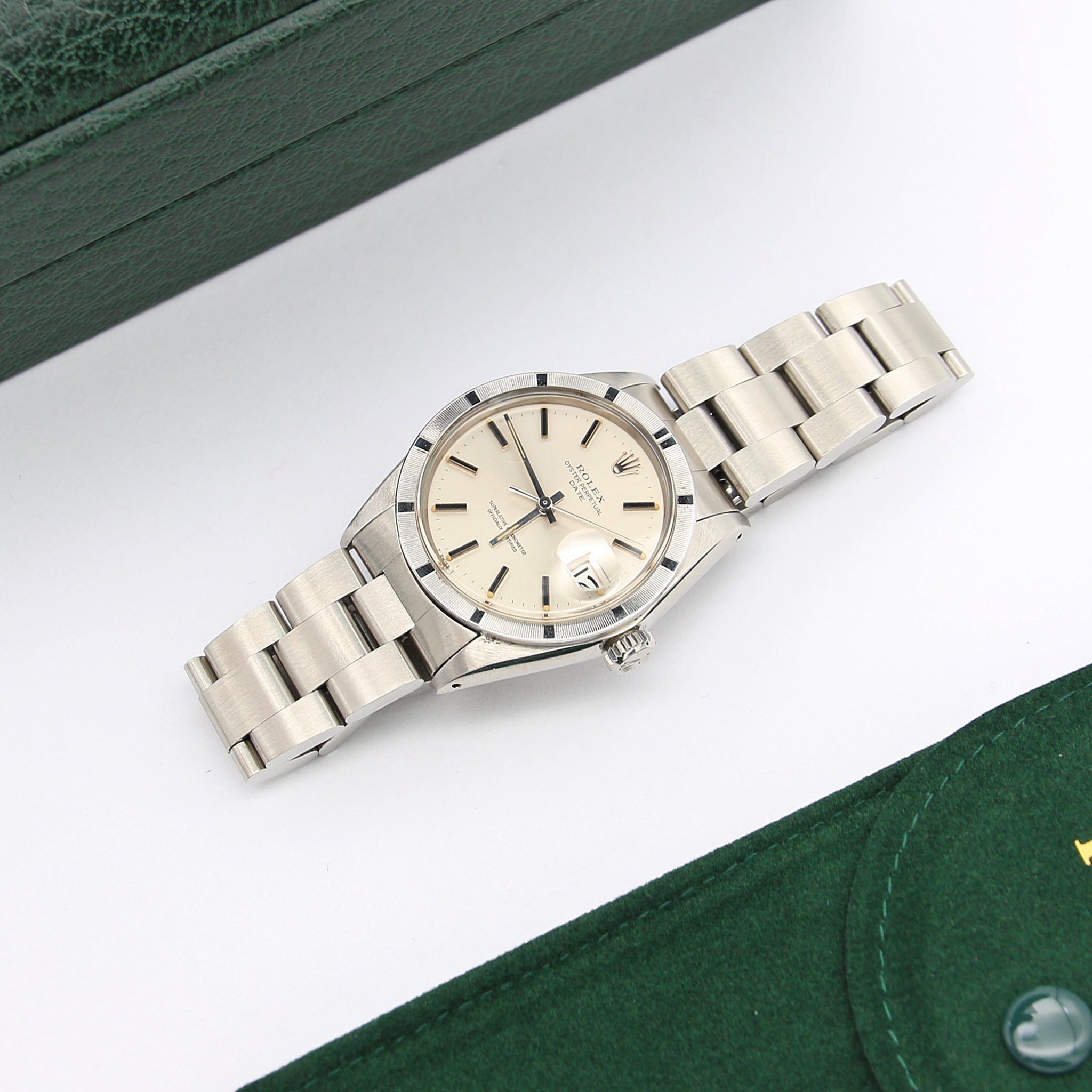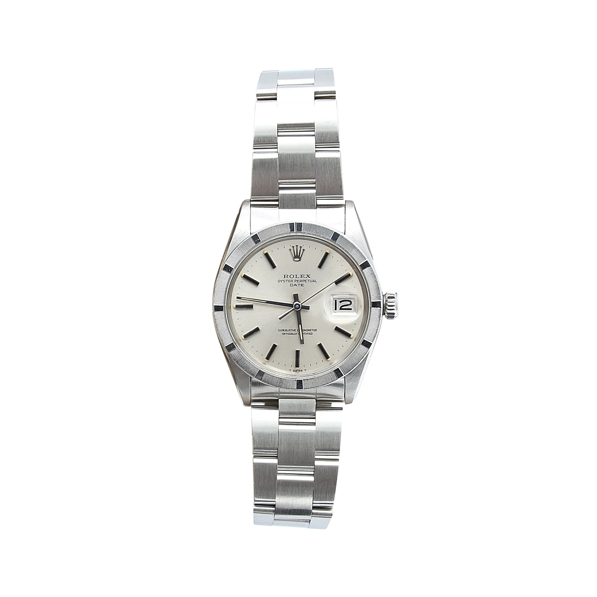 For sale at Debonar Watches: pre-owned Rolex Date 1501 with a classic silver dial and Oyster bracelet.