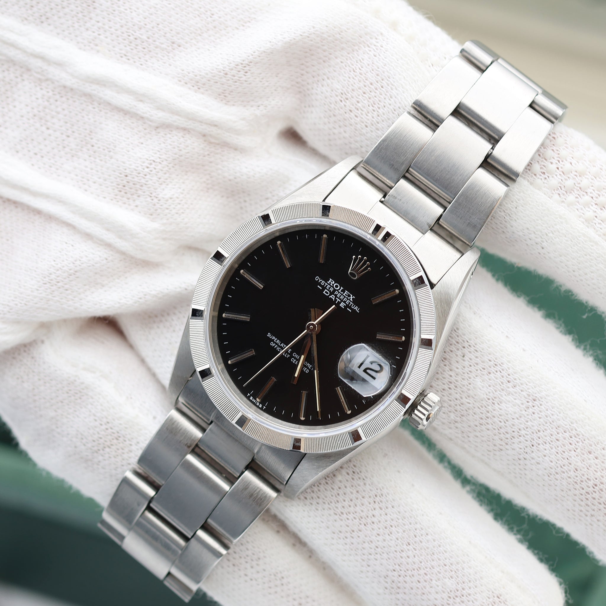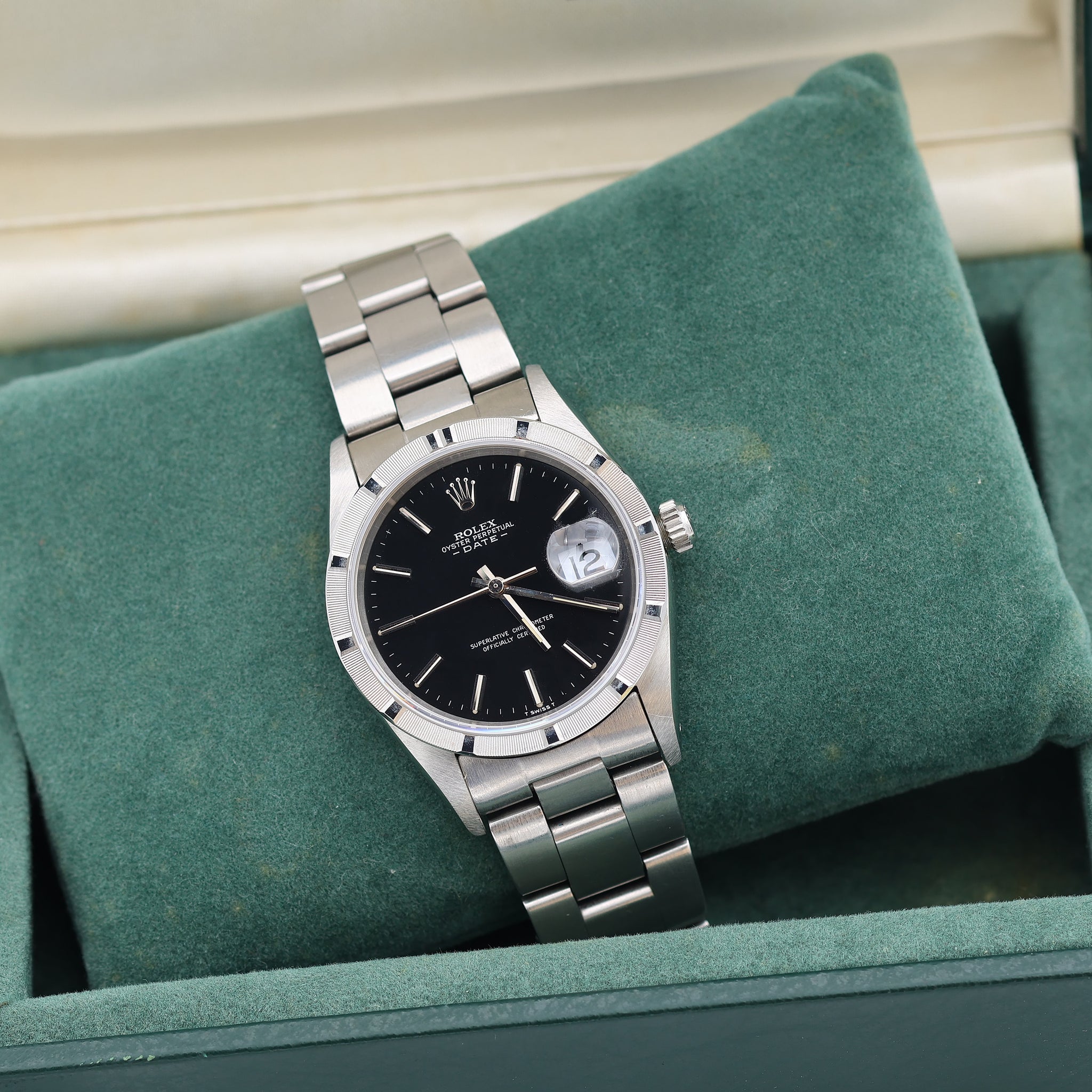 For sale: pre-owned Rolex Date ref. 15210 with black dial on an oyster bracelet, full set.