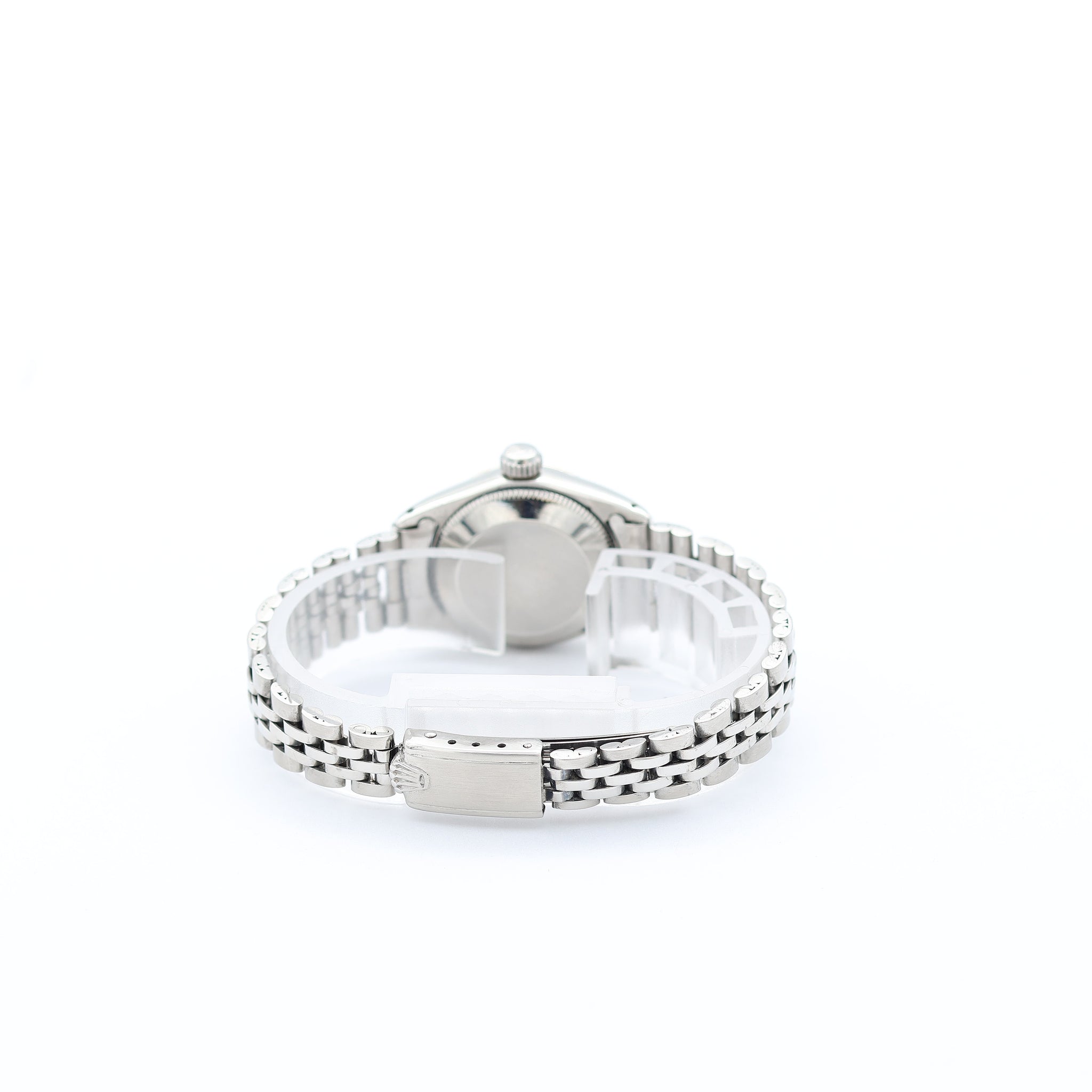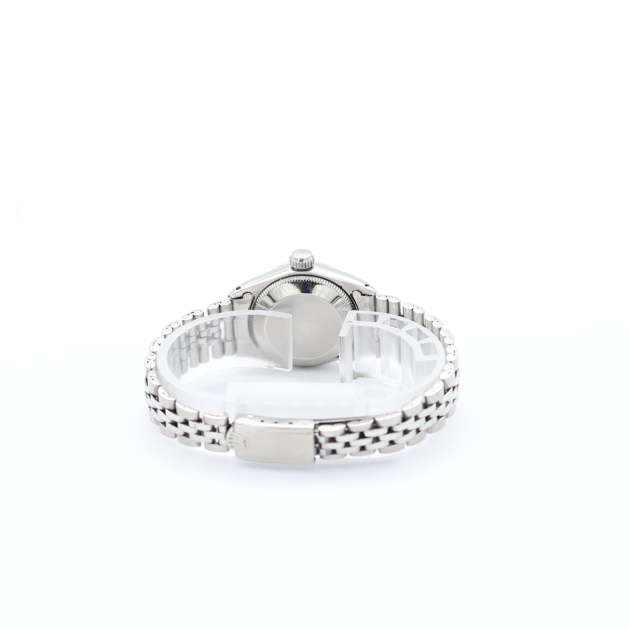 Steel case, white gold bezel, an acrylic crystal over the classic silver dial, and a Jubilee bracelet blend together to create a ladies reference that can handle whatever your day may bring: an important night or a casual business day.
