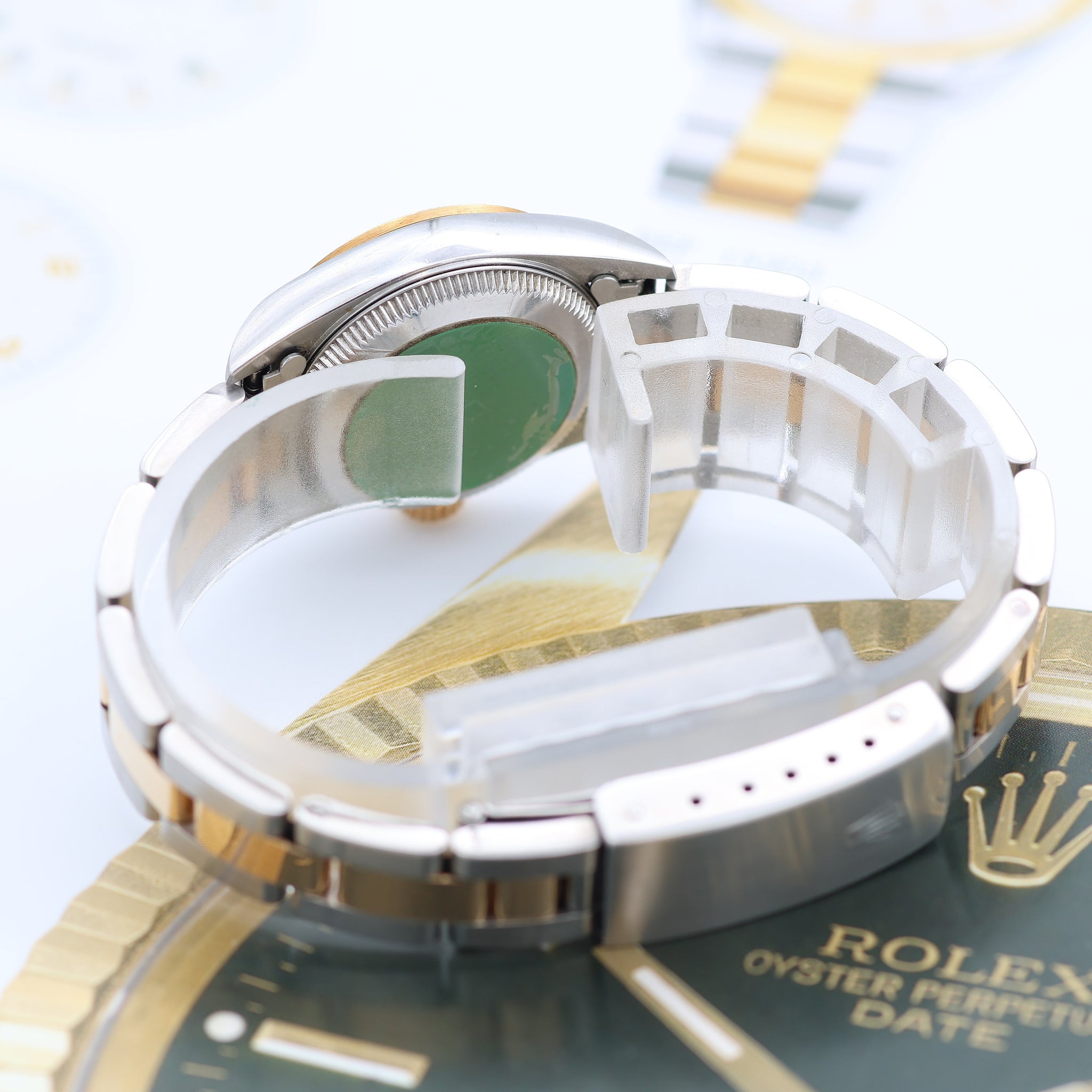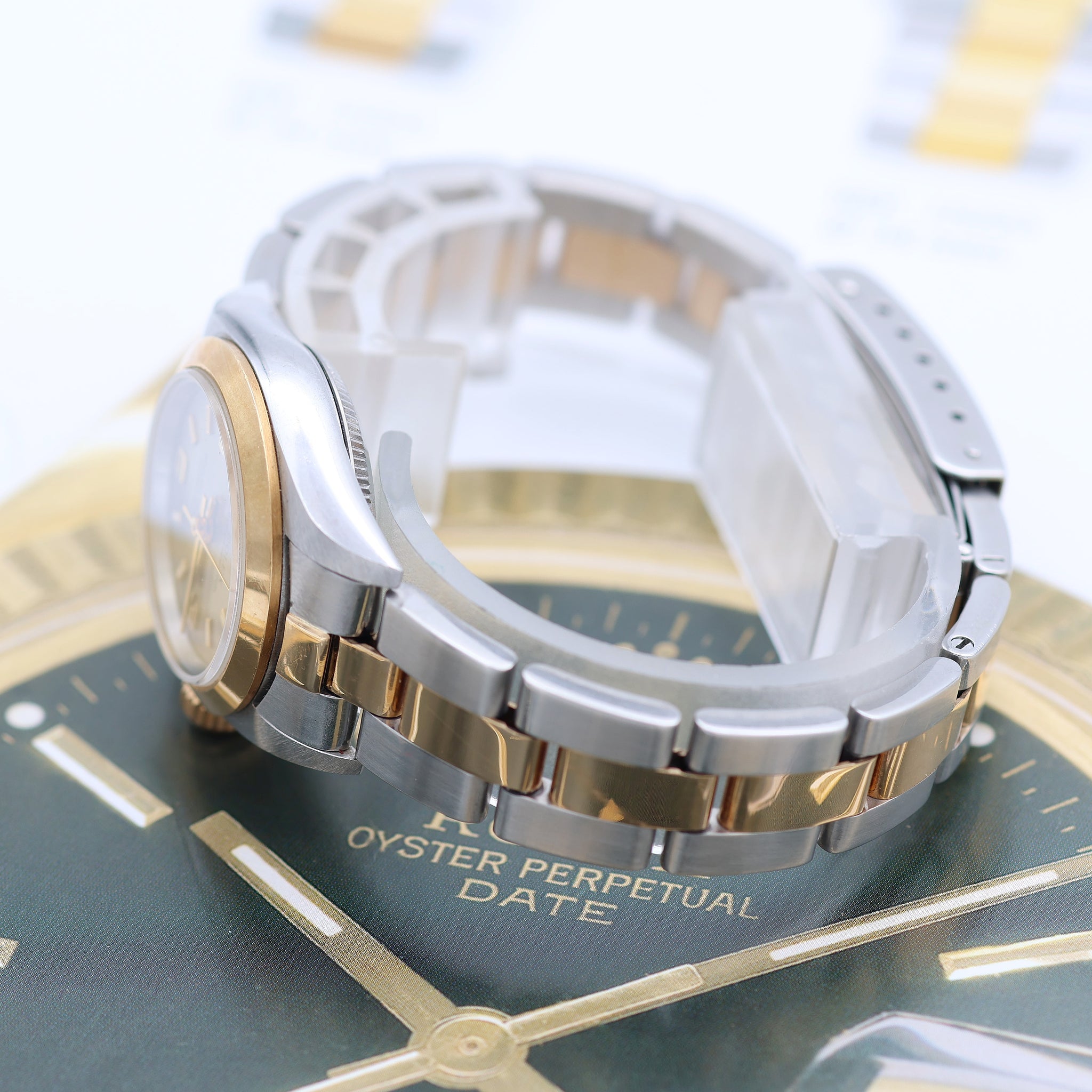 The 67183 Rolex is a two-tone edition that pairs stainless steel with gold.