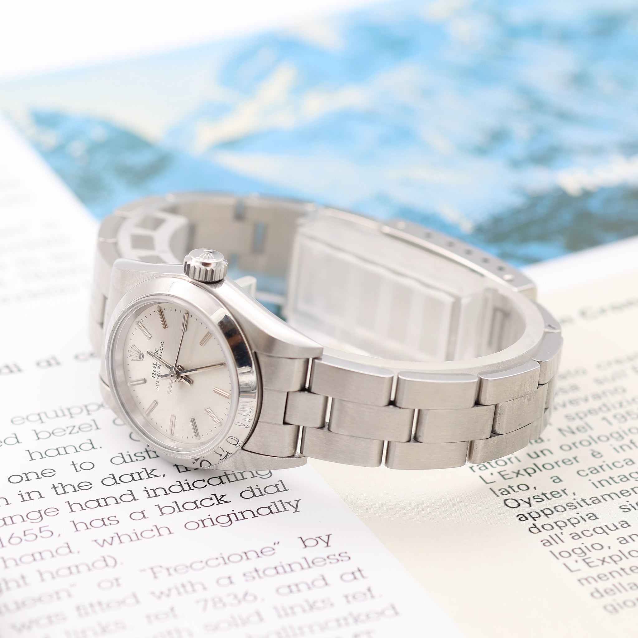 For sale at Debonar Watches: pre-owned Rolex Oyster Perpetual lady ref. 67180 with a classic silver dial.