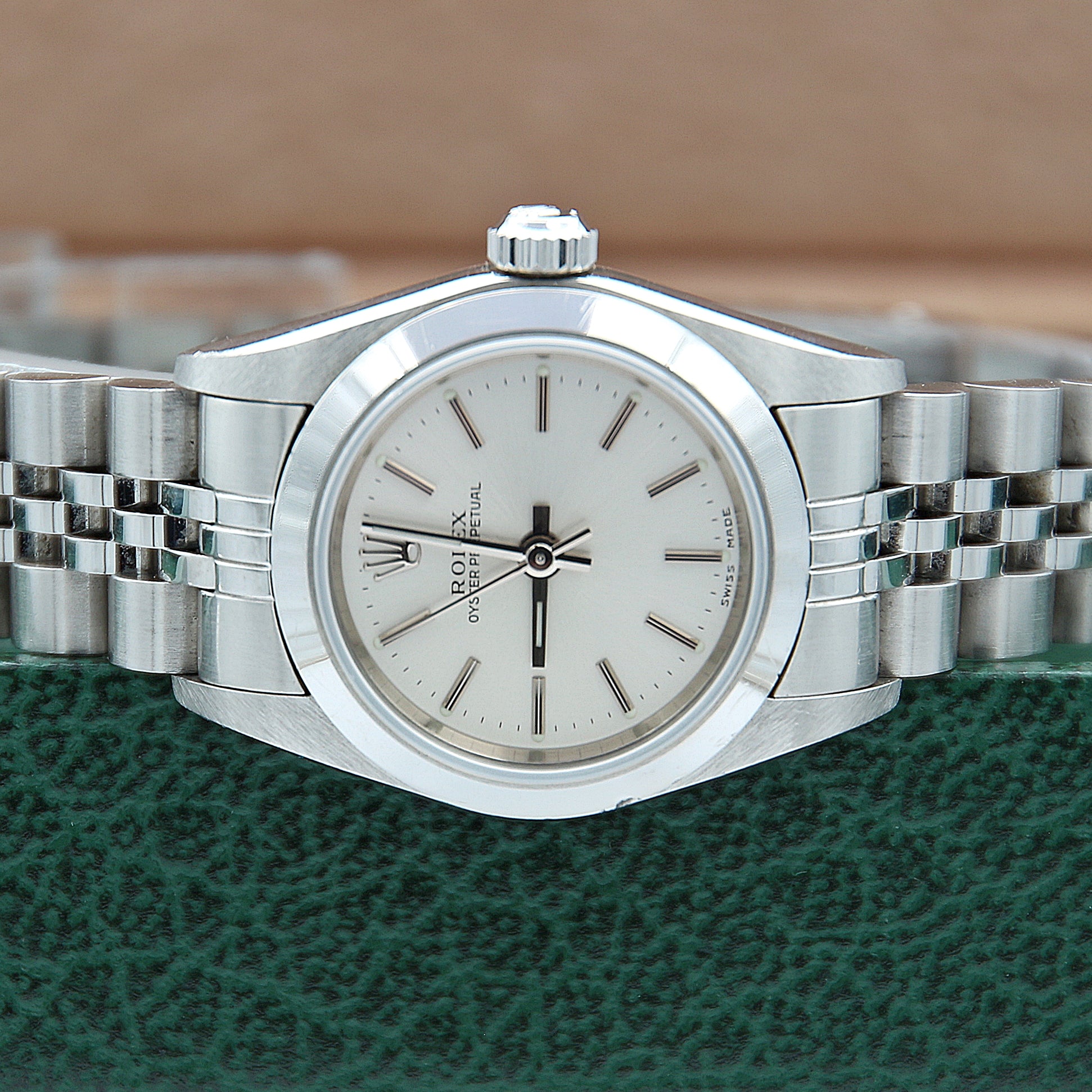This Rolex Oyster Perpetual ladies watch is a perennial design classic with the solid construction and mechanical reliability to match its timeless look.