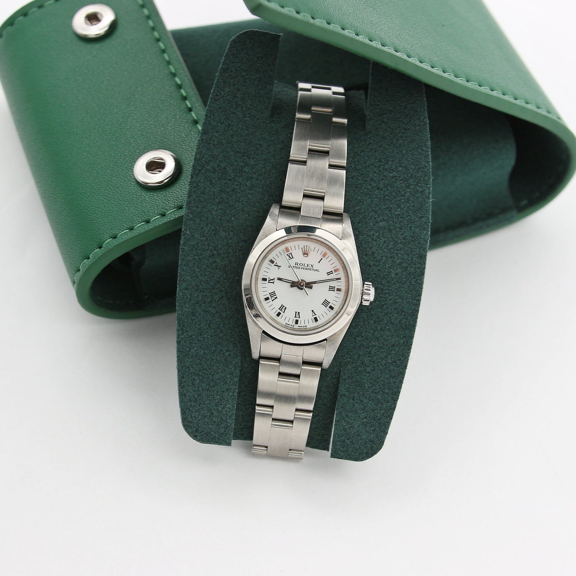 This Rolex Oyster Perpetual ladies watch is a perennial design classic with the solid construction and mechanical reliability to match its timeless look.