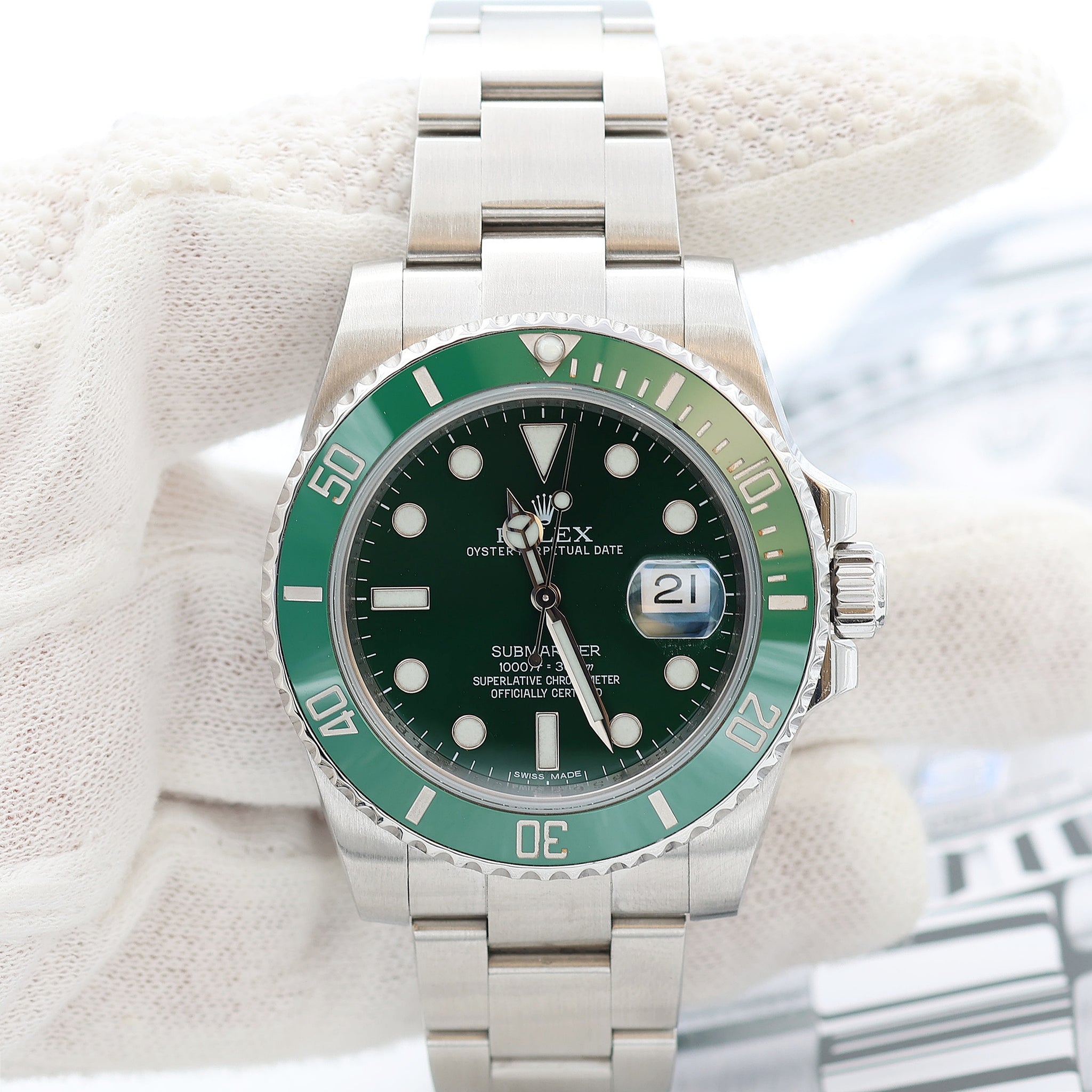 With its green ceramic bezel and matching sunburst dial, the Submariner "Hulk" is one of Rolex's most popular models.